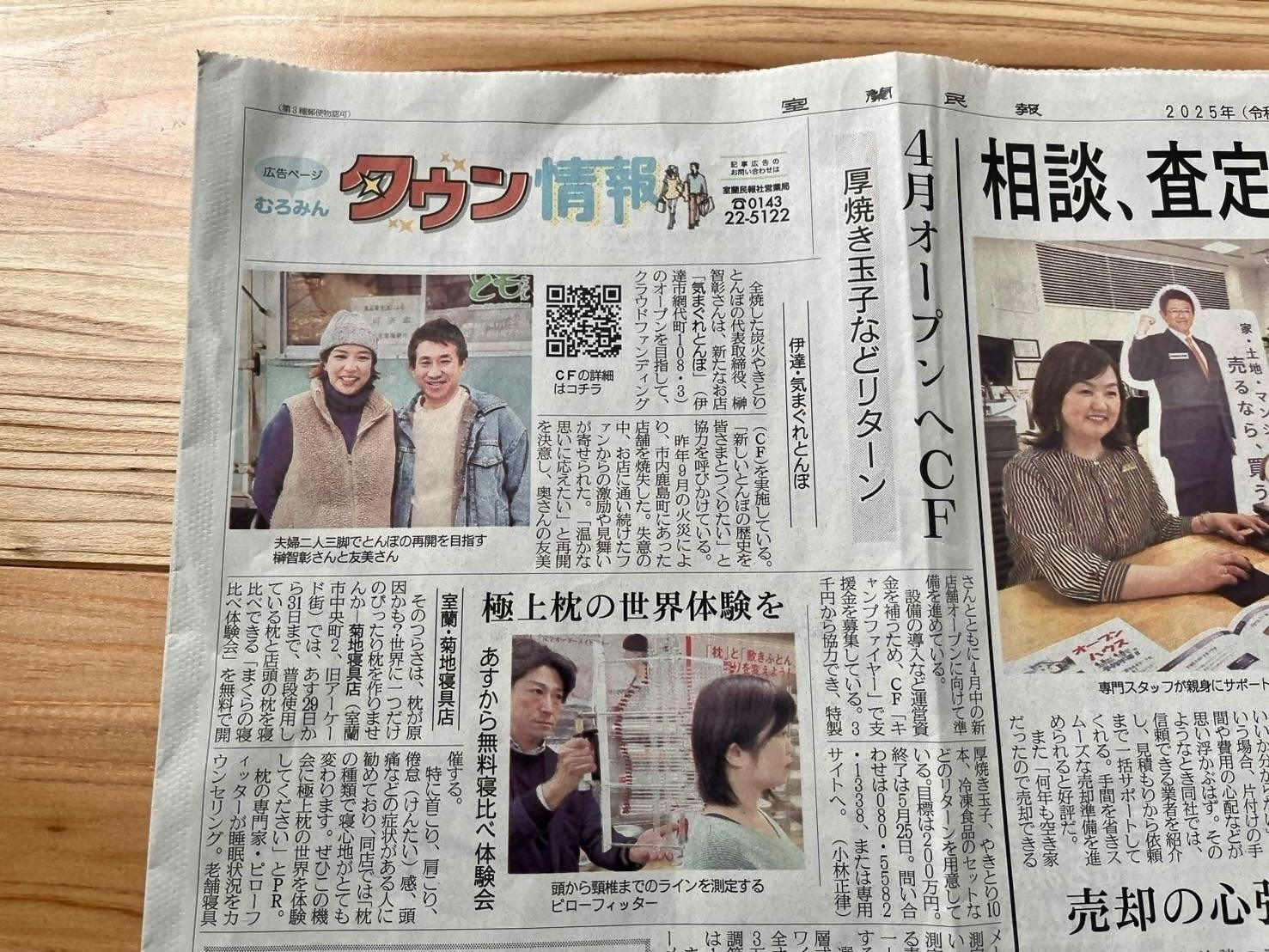 こんにちは。とんぼの店主 榊です。昨日、3月28日(金)の室蘭民報に掲載されました。目に触れた方はいらっしゃるでしょうか?クラウドファンディングに挑戦している様子やリターンについても触れていただいています。取り上げていただき、本当に感謝です。現在、「気まぐれ とんぼ」オープンに向けて全力で準備中です。オープンは、4月1日(火)に決まりました。しばらく店舗での営業をしていなかったこと、新しい場所での営業であることなど、ちょっと不安もあります。が、頑張りたいと思います!引き続き、応援よろしくお願いいたします。𖤣𖥧𖥣𖡡𖥧𖤣𖤣𖥧𖥣𖡡𖥧𖤣𖤣𖥧𖥣𖡡𖥧𖤣▶︎ 2025年4月「気まぐれ とんぼ」を移転オープン!火事で全焼からの再建に挑戦!このプロジェクト期間は、2025年5月25日(日)まで。下記の【シェアしてプロジェクトをもっと応援!】では、Xでの投稿、Facebookでのシェア、LINEへの送信が簡単にできます。上記のURLをコピーして、お送りいただいてもOK!シェア・拡散が『 気まぐれ とんぼ 』再建のための力になります。どうぞよろしくお願いします。気まぐれ とんぼ榊 智彰
