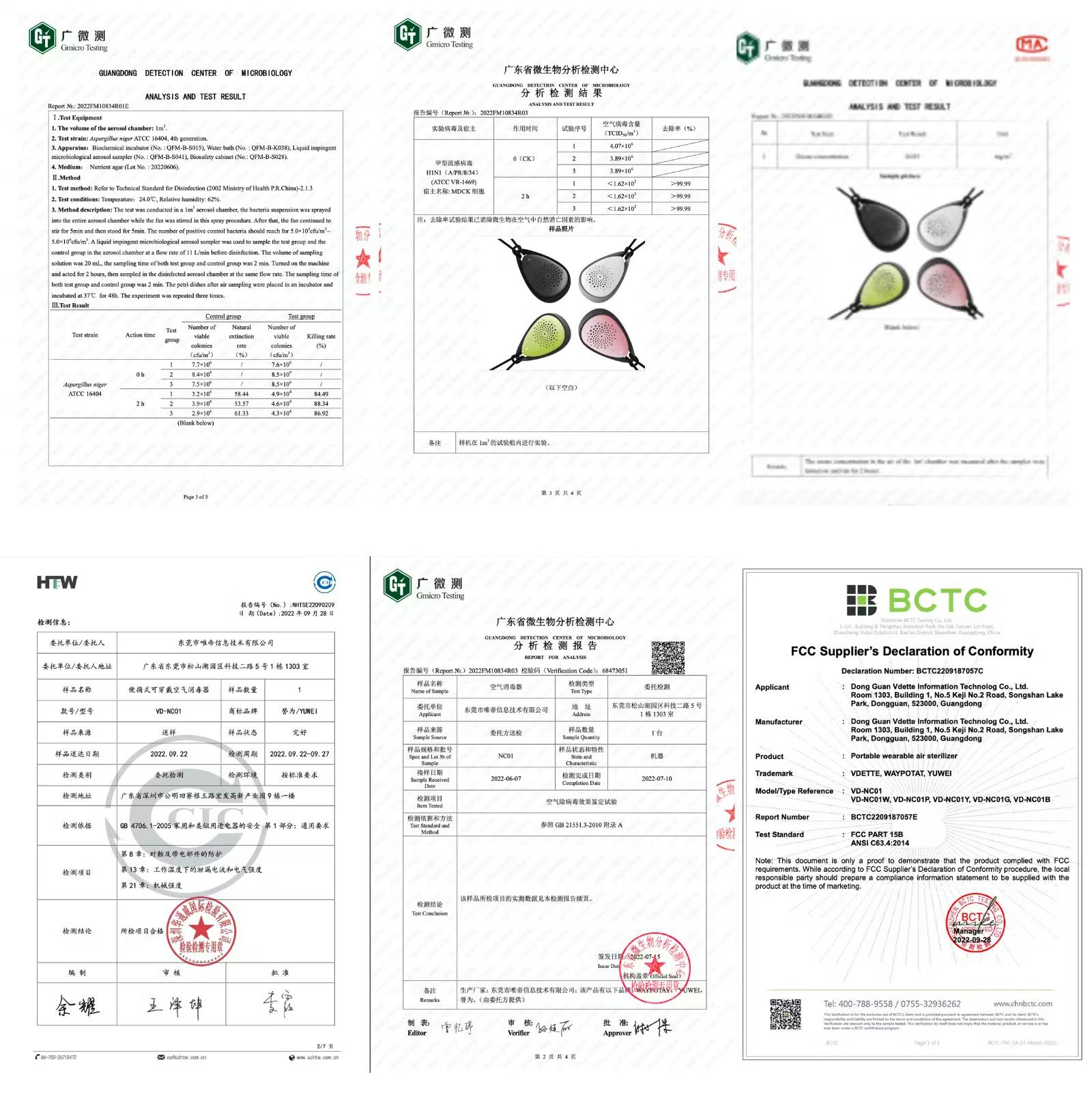 VD-NC01は、信頼性の高い試験機関でウイルス·黒カビ除去率、オゾン濃度の安全性を実証済み。