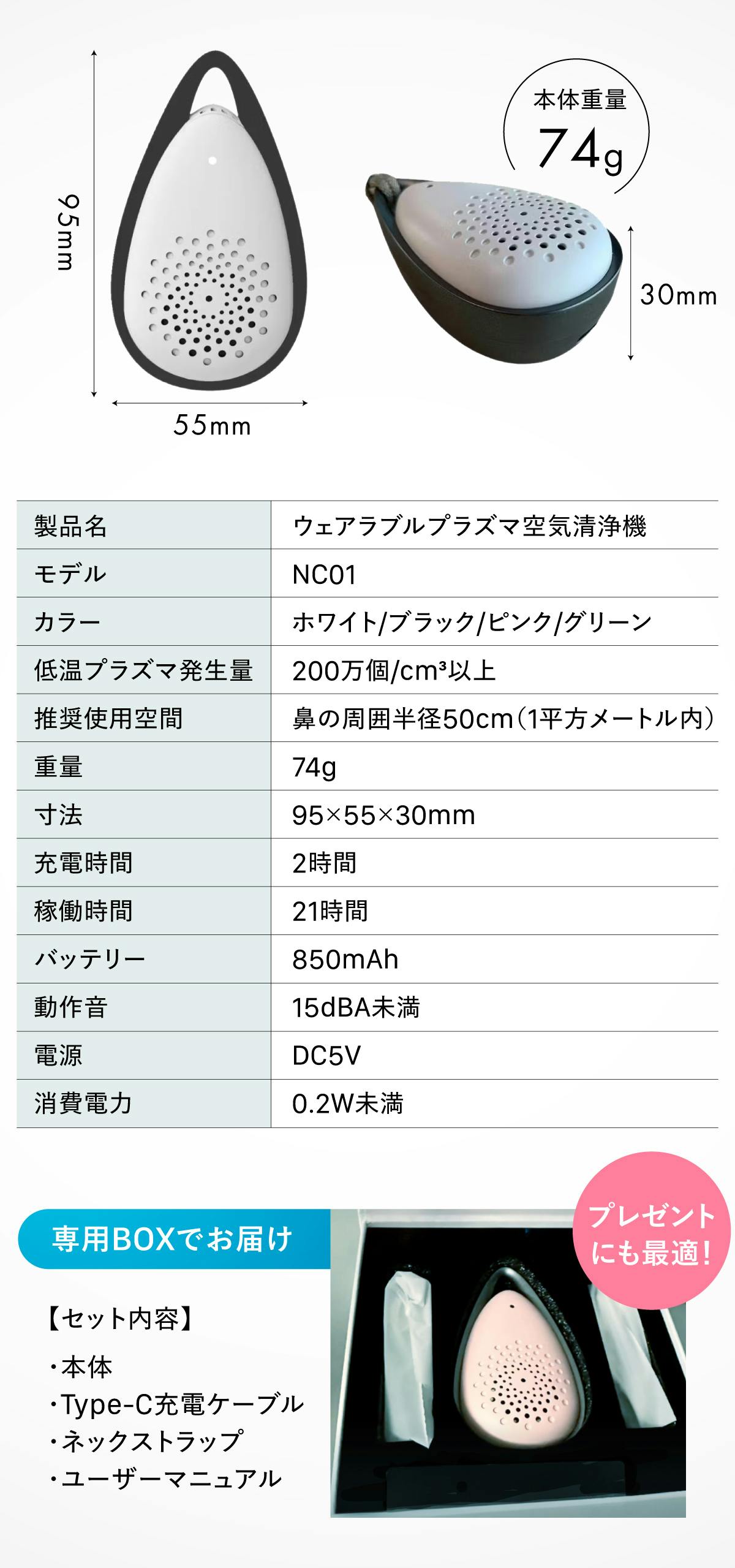 超軽量74gなので持ち運びもラクラクです。 オフィス、電車、カフェ、旅行先…いつでも、どこでも空気を浄化して快適な環境をキープすることができます。
