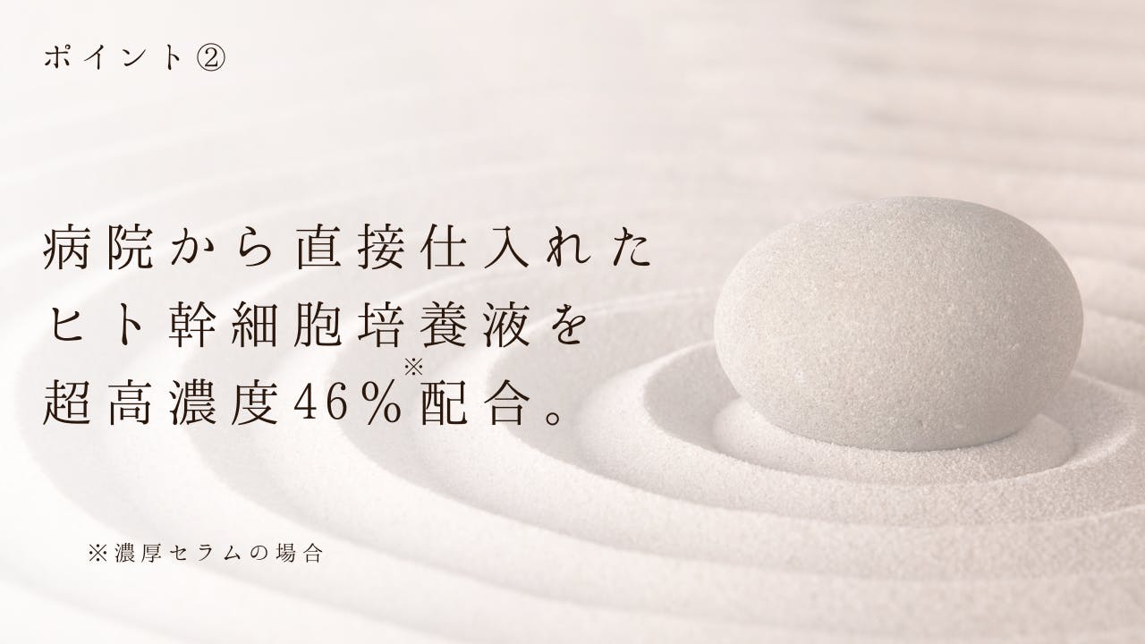 ヒト幹細胞培養液を最大46%という超高濃度で配合していること。