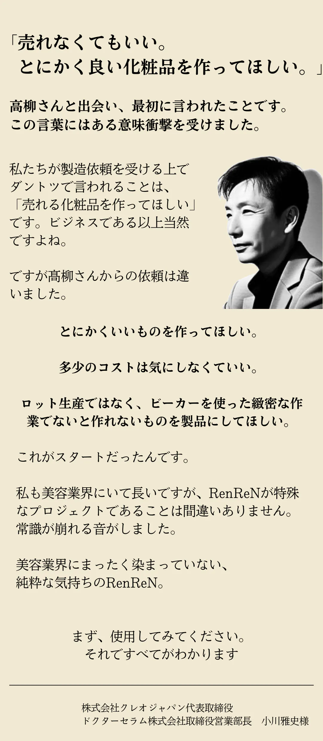 「細胞をケアする」常識はずれの化粧品『RenReN』