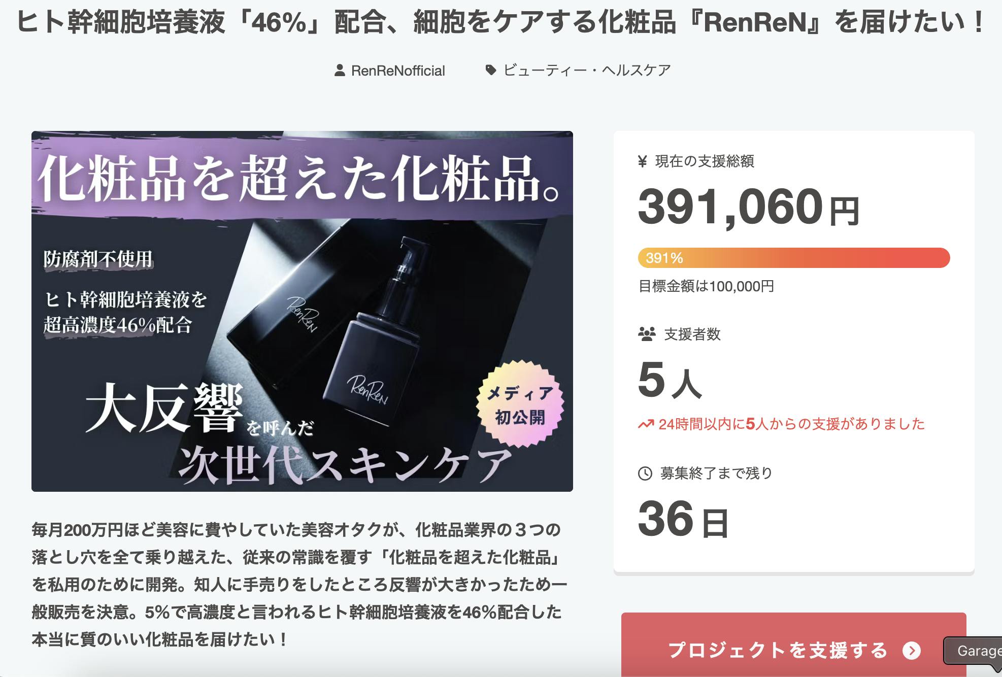 公開4時間で達成率391%まで伸ばすことができました。