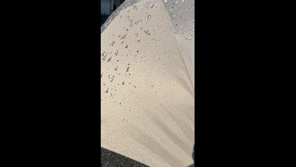 いかに水滴(水)が滑りやすいか・落ちやすいか?弊社では動的撥水性を比較する為に滑落角による比較をしました。【快滴DRY】は一般的な傘(通常撥水)生地が30°程度(滑落角・※傾斜角度)に対し、半分以下の11°(滑落角・※傾斜角度)の検証結果が出ています。少しの傾けで水滴が落ちる。超撥水で水はじき・撥水も優れ・水滴が残りにくい・滑りやすい・落ちやすい滑落にも優れた生地となっています。