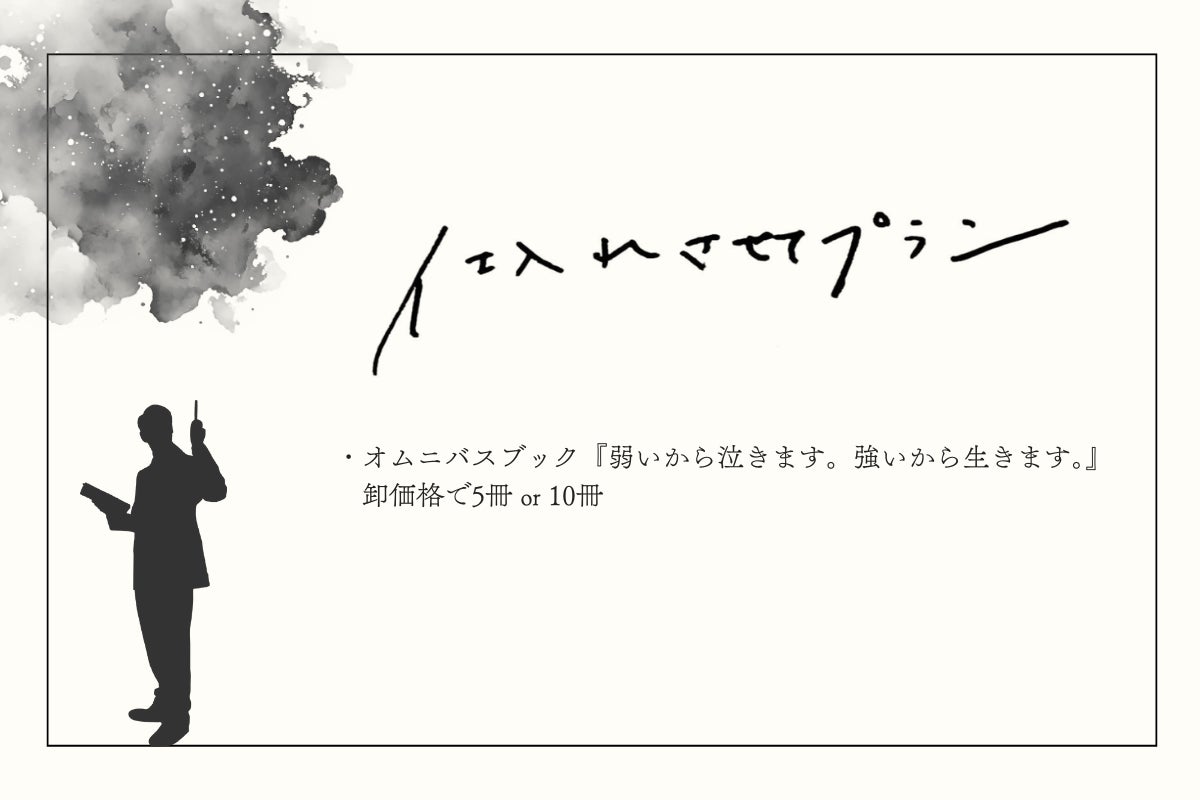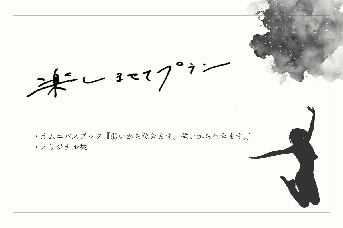 オムニバスブックに加え、オリジナル栞をお届けします。『弱いから泣きます。強いから生きます。』を全力で楽しめるプランです。