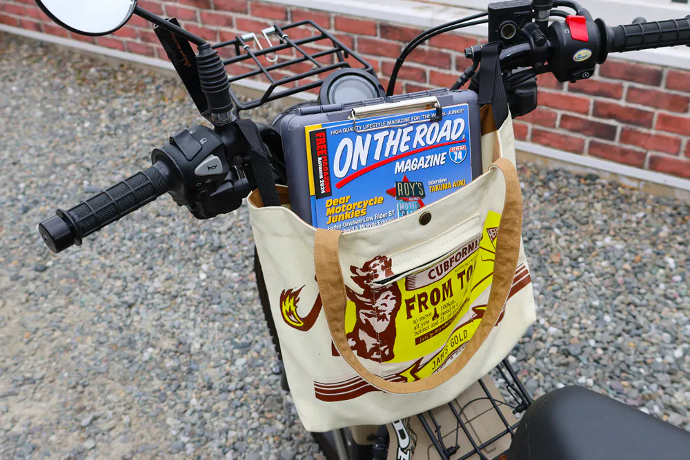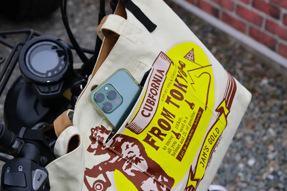 そこで普段使いできるバイクバッグという発想から、カジュアルなバッグをバイクや乗り物用としても使うためには?という発想の転換から生まれた新感覚のトートバッグです。