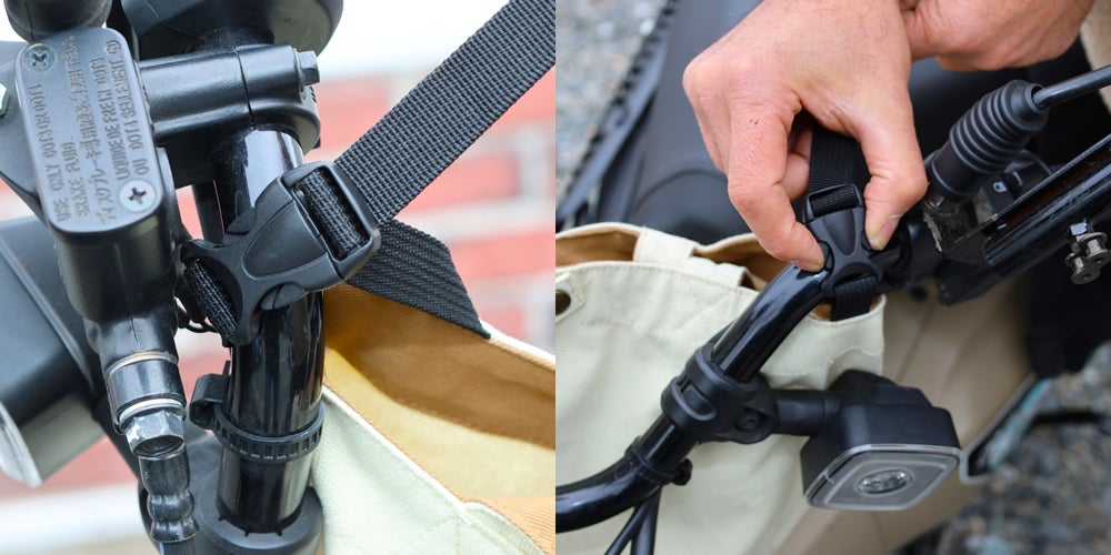 トートバッグは使いやすくてとても便利!だけどトートのままスクーターや自転車で出発すると、途中で手首まで下がってくるカバンのひもを何度も肩まで引き上げる・・・そのうちぶら下げたまま走行!そんな体験ありますよね? これ結構危険なんです!!
