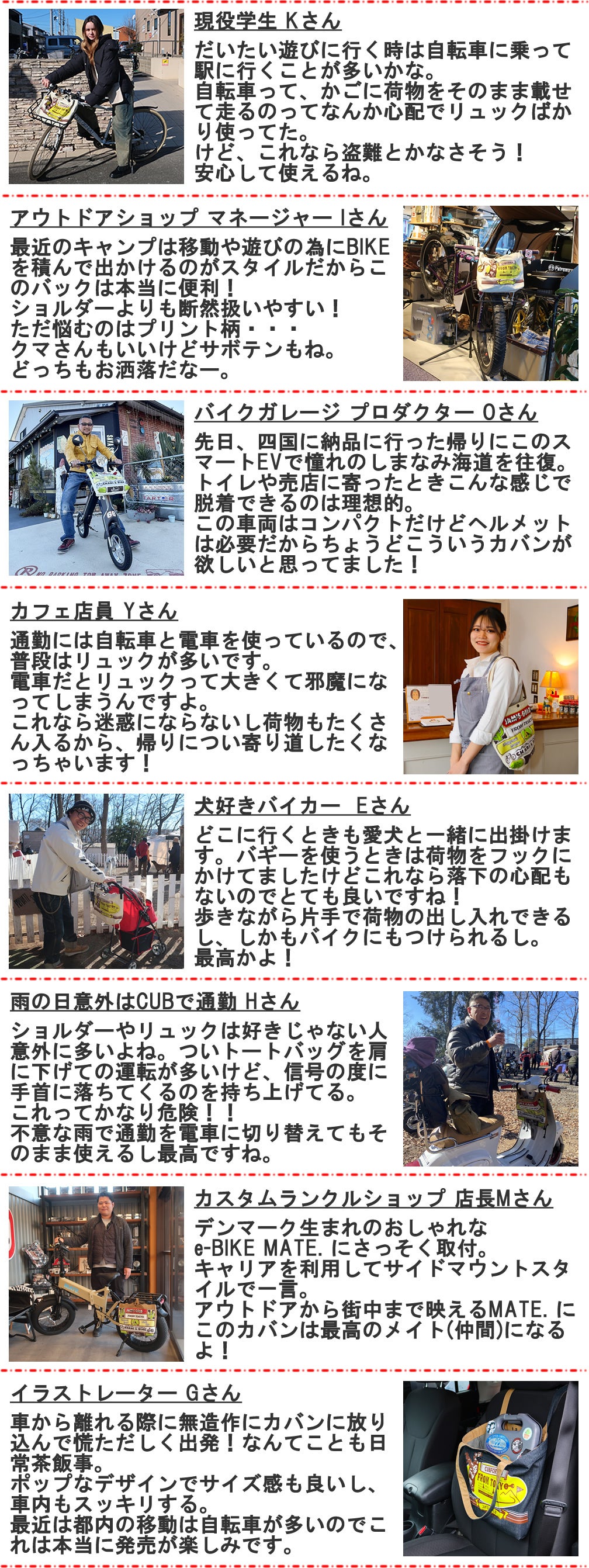 バイク用品の枠を超え、様々な乗り物と共に行動するすべての人に向けたトートバッグとしてフラットな視点で見て頂きたいからこそ、キャンプファイヤーのユーザー様へのご提案からスタートしました!