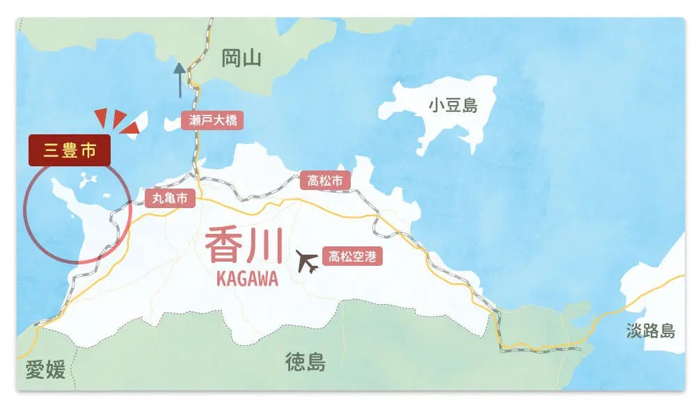 今巷で有名な香川県三豊市は香川県の西部、県内を南北に拡がって立地しています。