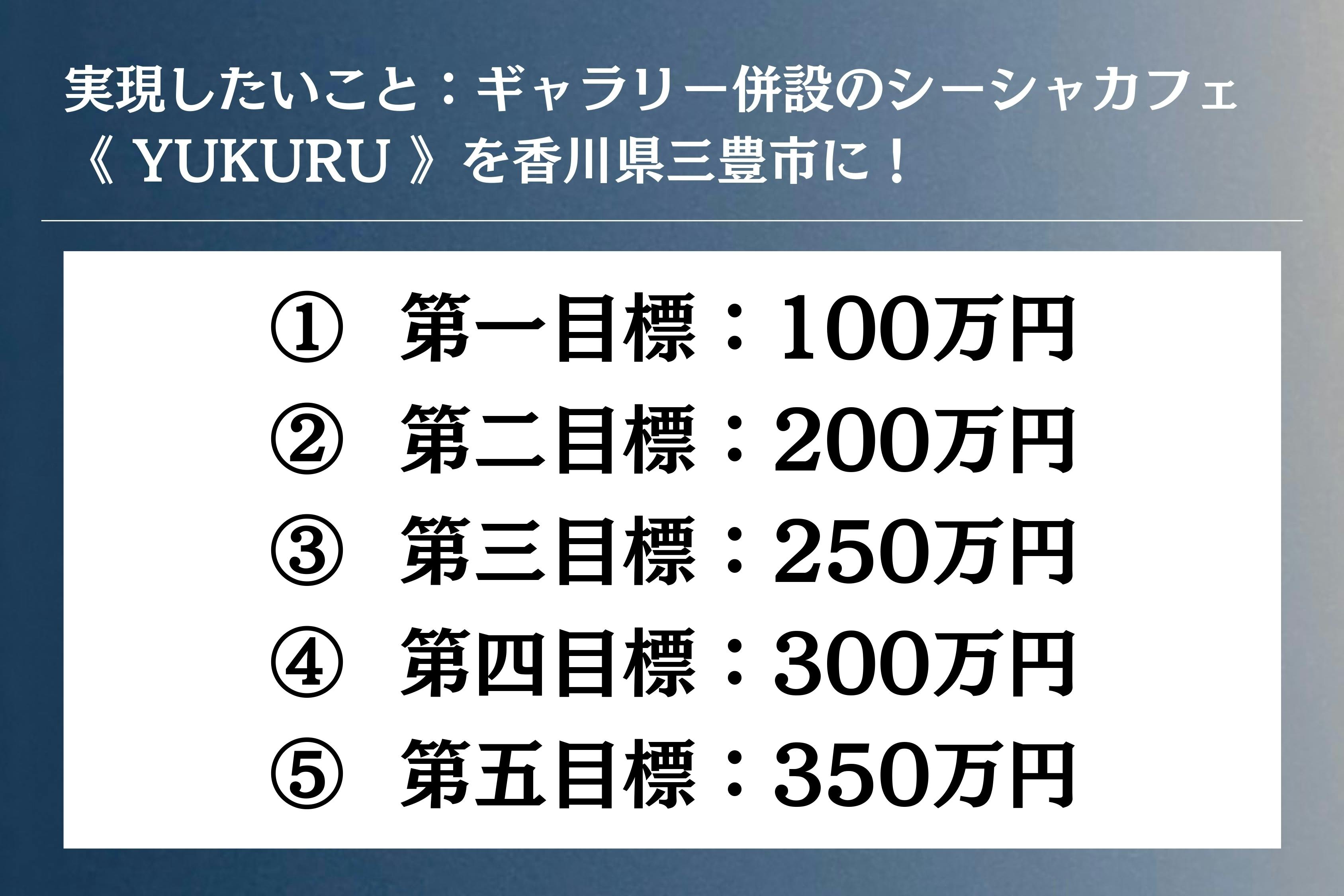 第一目標達成時には、YUKURU開業時に掛かる設備費として使わせていただきます。