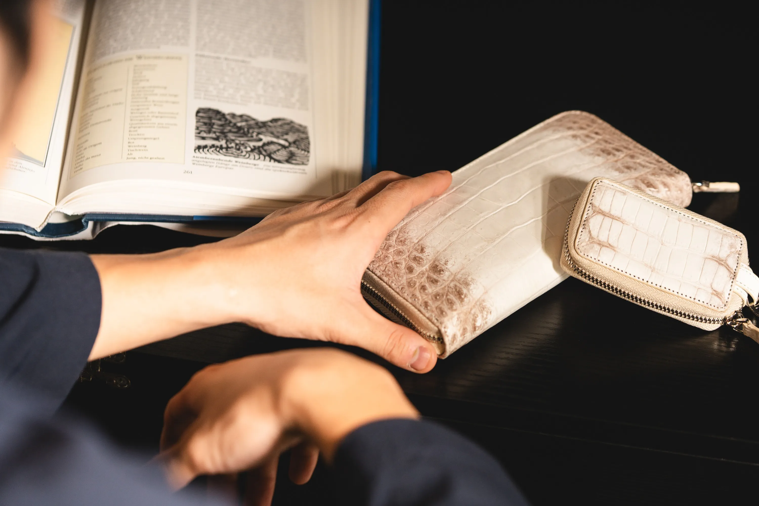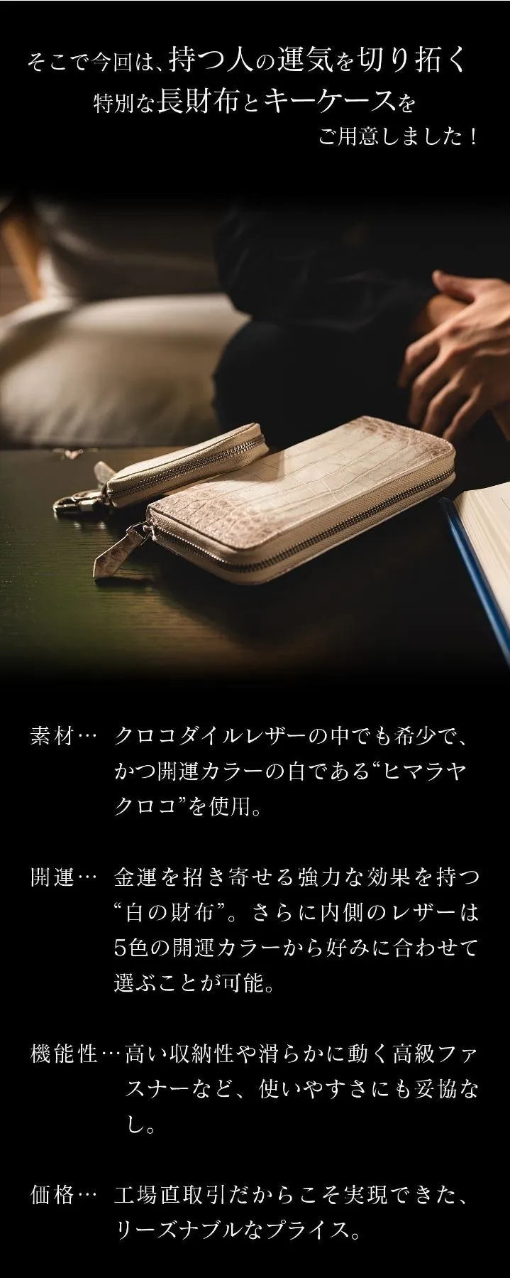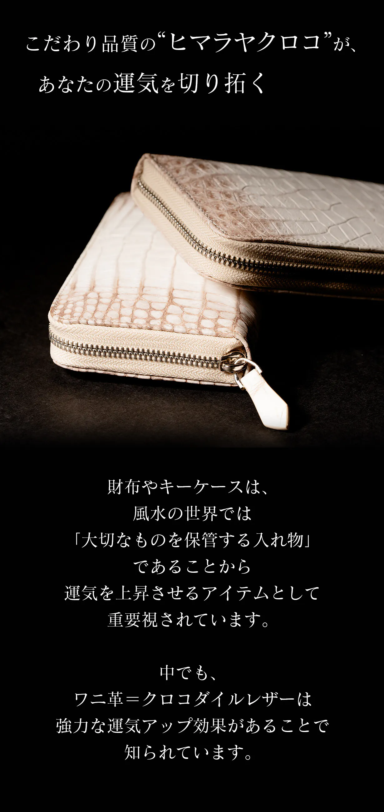 この「龍」の字に唯一無二の価値を意味する「希」の字を冠し、クロコダイルレザー、その中でも希少なヒマラヤクロコを贅沢に使用した長財布&キーケースの力強さ・美しさを表現しました。