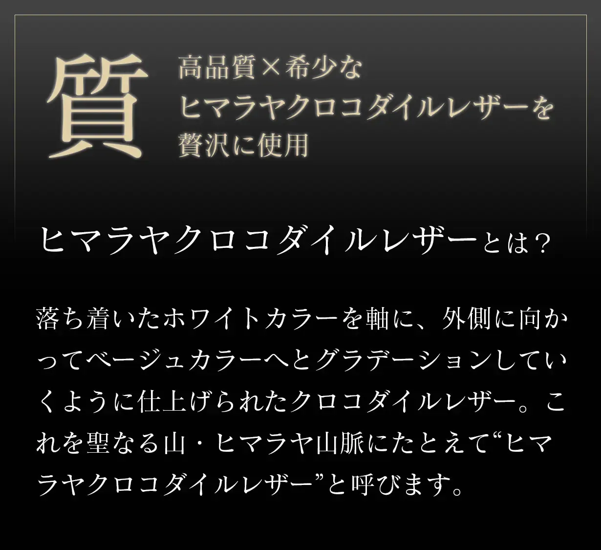 ☑️【ワニ革の本場タイ】から仕入れた、希少な“ヒマラヤクロコダイルレザー”を贅沢に使用