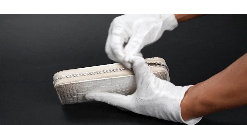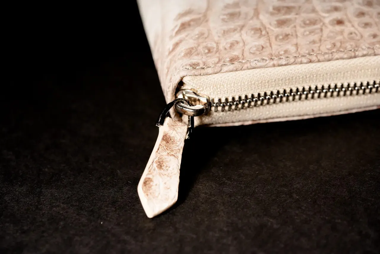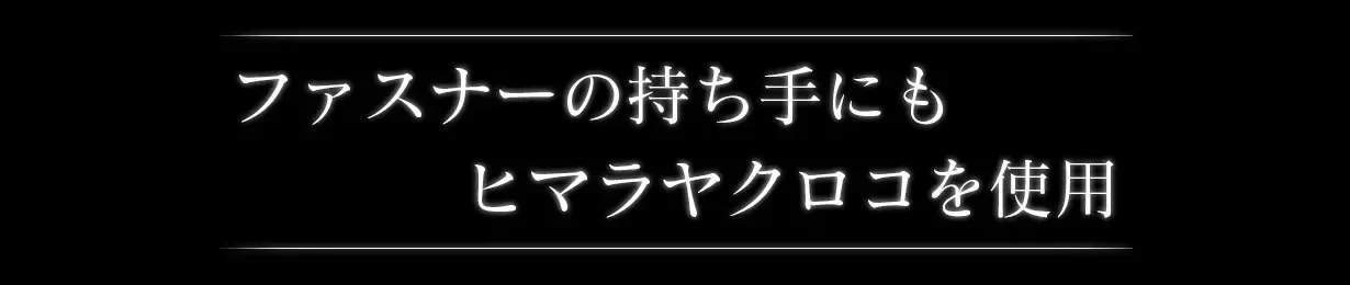 ファスナーの持ち手(ファスナープル)にも贅沢にヒマラヤクロコを標準採用。