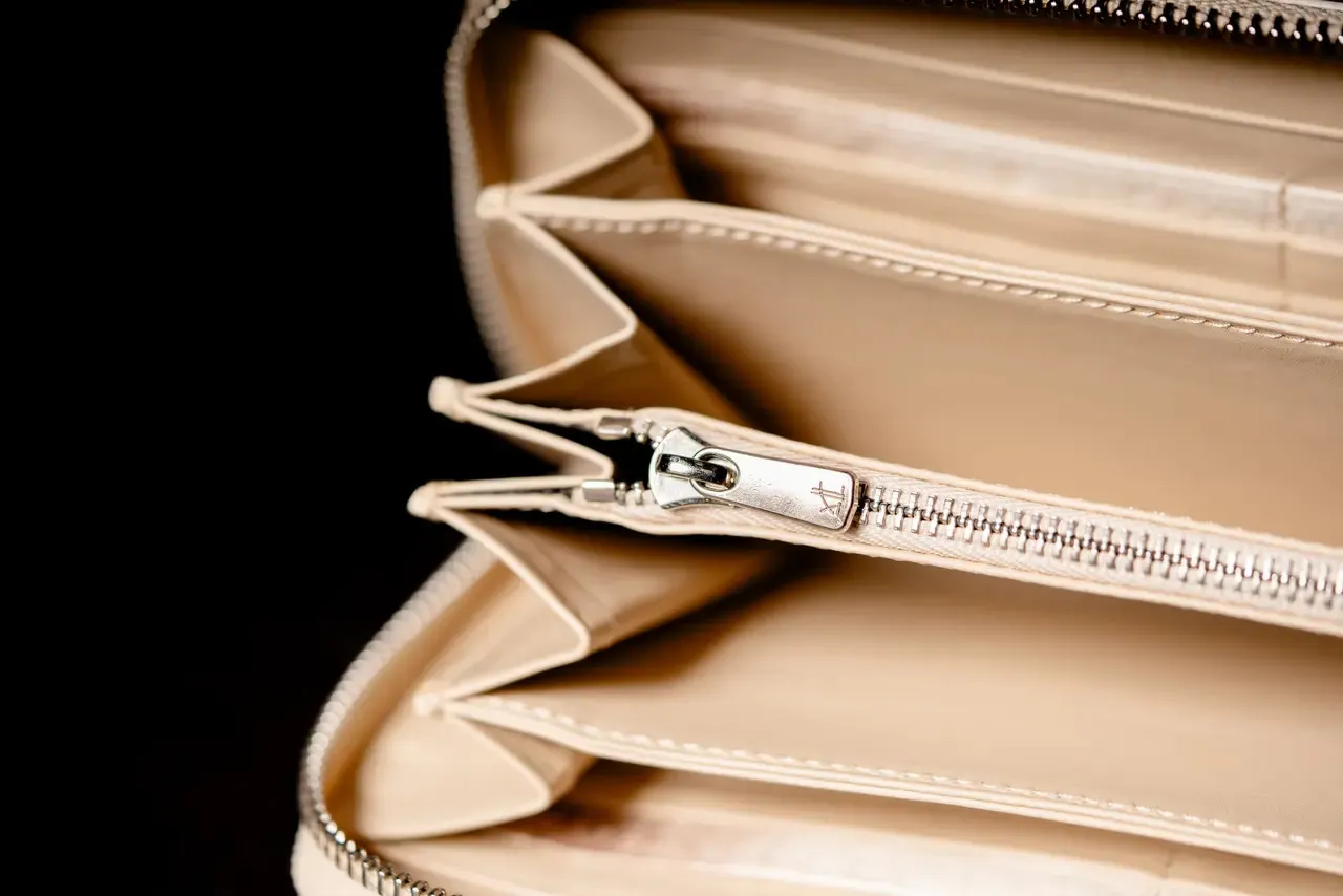 ファスナーの歯(エレメント)1つ1つを丁寧に磨き上げ、美しい見た目だけでなく、滑らかな開閉を実現したYKK社の上位モデルEXCELLA®を使用しています。
