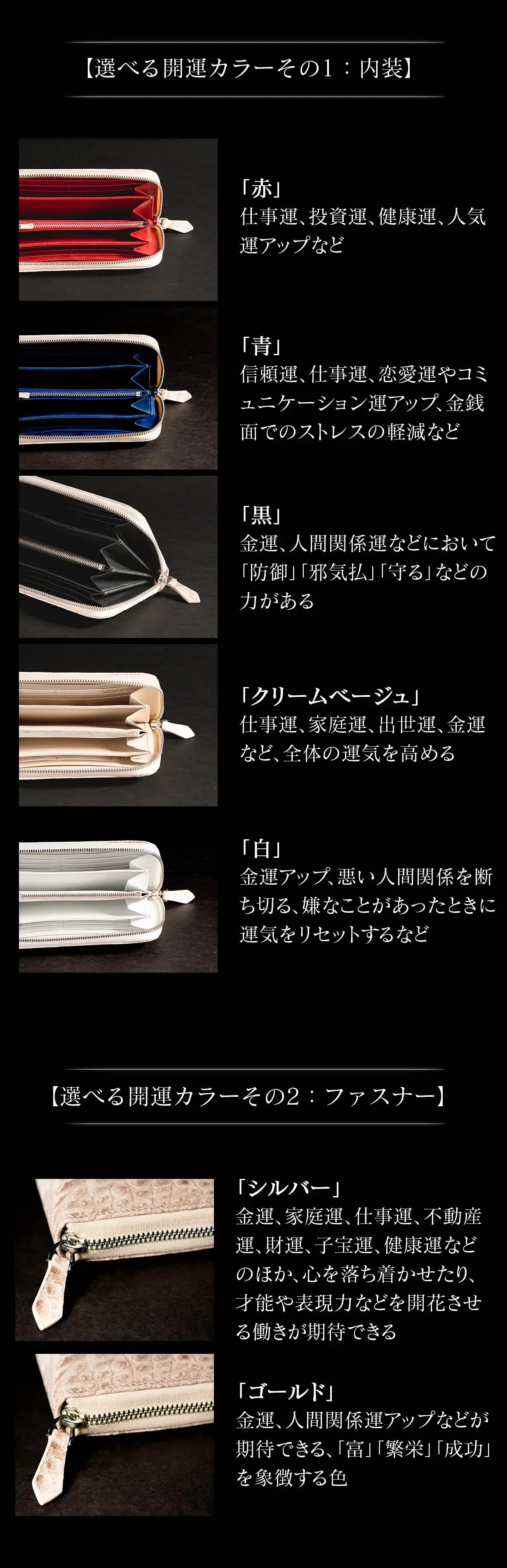 - ☑️金運を強力に呼び寄せる“白の財布”×幸運を招く【選べる5色の内装カラー】で個性と運気アップ!