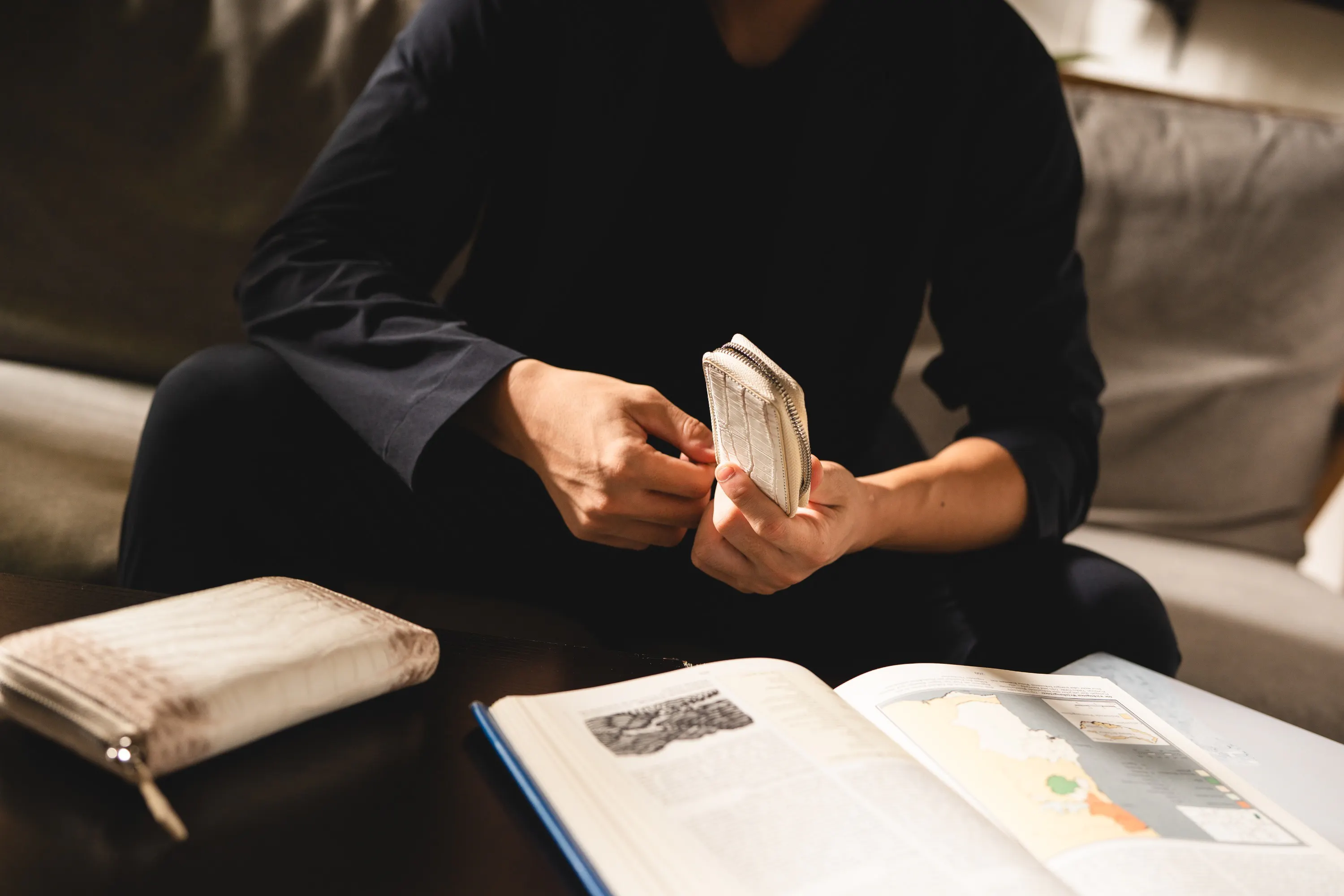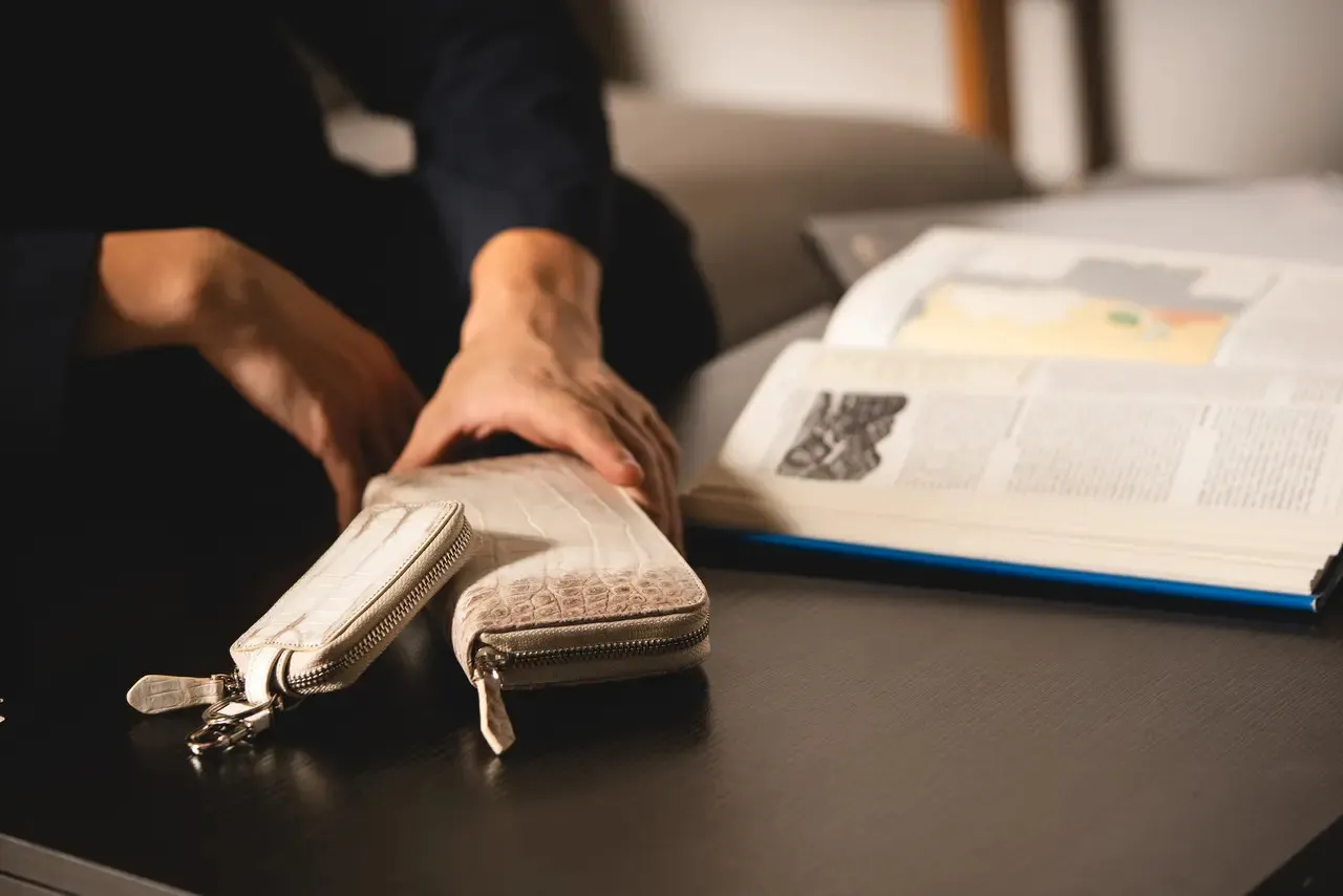 こんな金運招来の力を持つ白を、金運と特に結びつきの強い小物である財布・キーケースと組み合わせることで、持つ人の運気を引き出します。