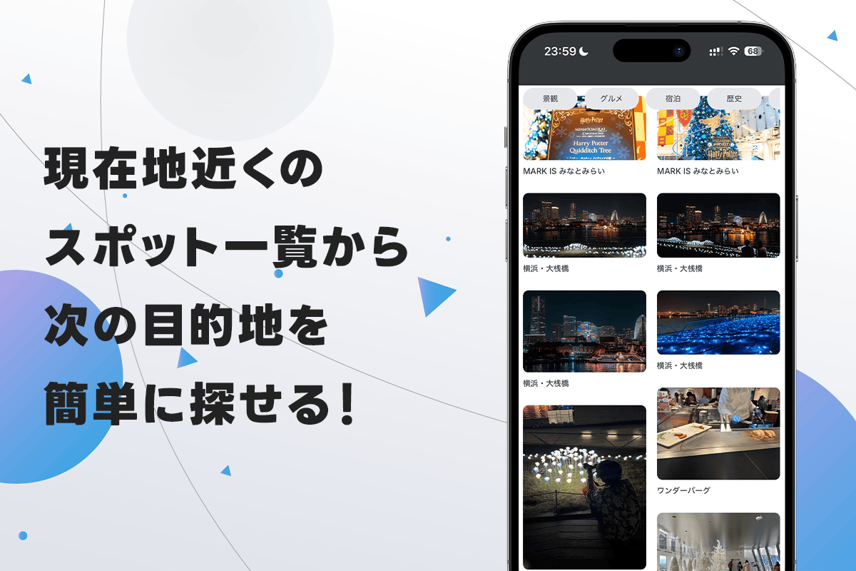 「ポラリス」は、検索に頼らず、自分好みのお出かけ先を簡単に見つけられる新しいサービスです。デートや旅行中に次の行き先を迷った経験はありませんか?ポラリスでは、画像を中心としたSNSの仕組みを活用し、現在地や興味に基づいて最適なスポットを提案します。
