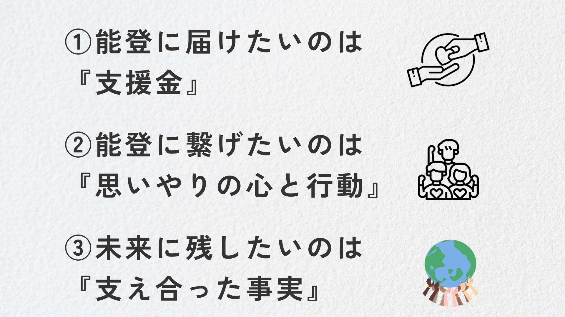 一人でも多くの方の想いに触れ、能登の被災地に届けたいです。