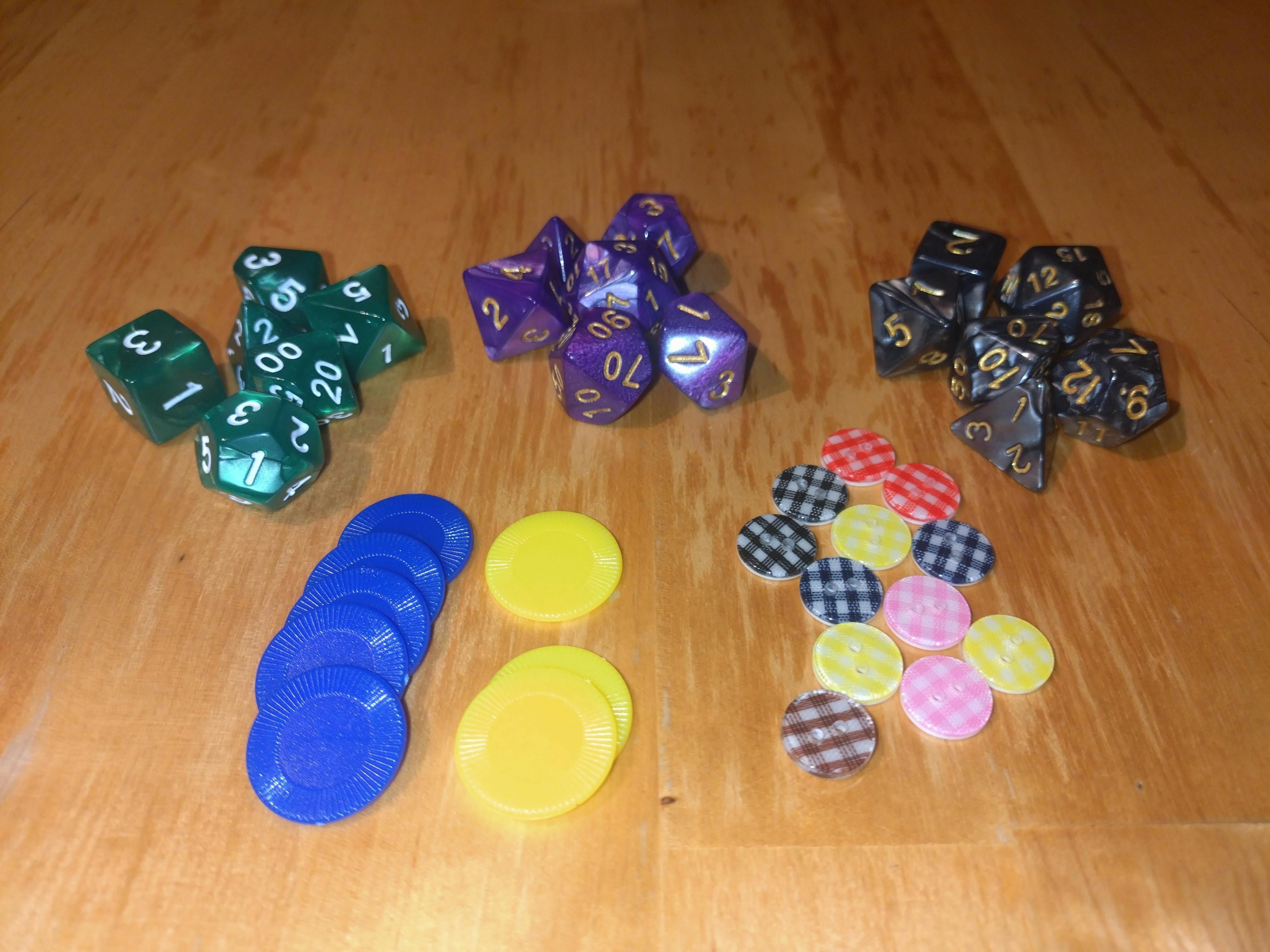 ・STチップとアドバンテージマーカーは、100円ショップ セリアさんでプラスチック製のチップが販売されていますし、ダイソーさんの手芸コーナーでは小さなボタンがたくさん入ってお得です。また、紙を小さくちぎってもいいし、別紙に鉛筆でチェックして消しゴムで消しても構いません。別売り品の例