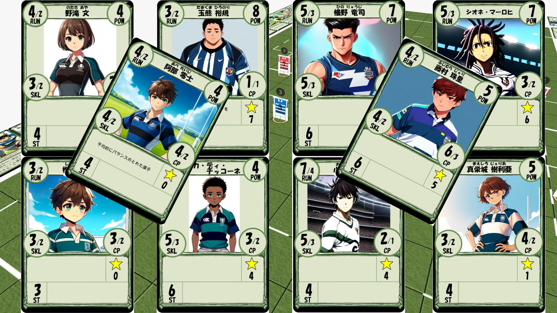 個性豊かな選手カードには、女子選手、規格外の体格の選手、まだ幼さの残る選手、海外からの留学生など様々な選手たちがいます。