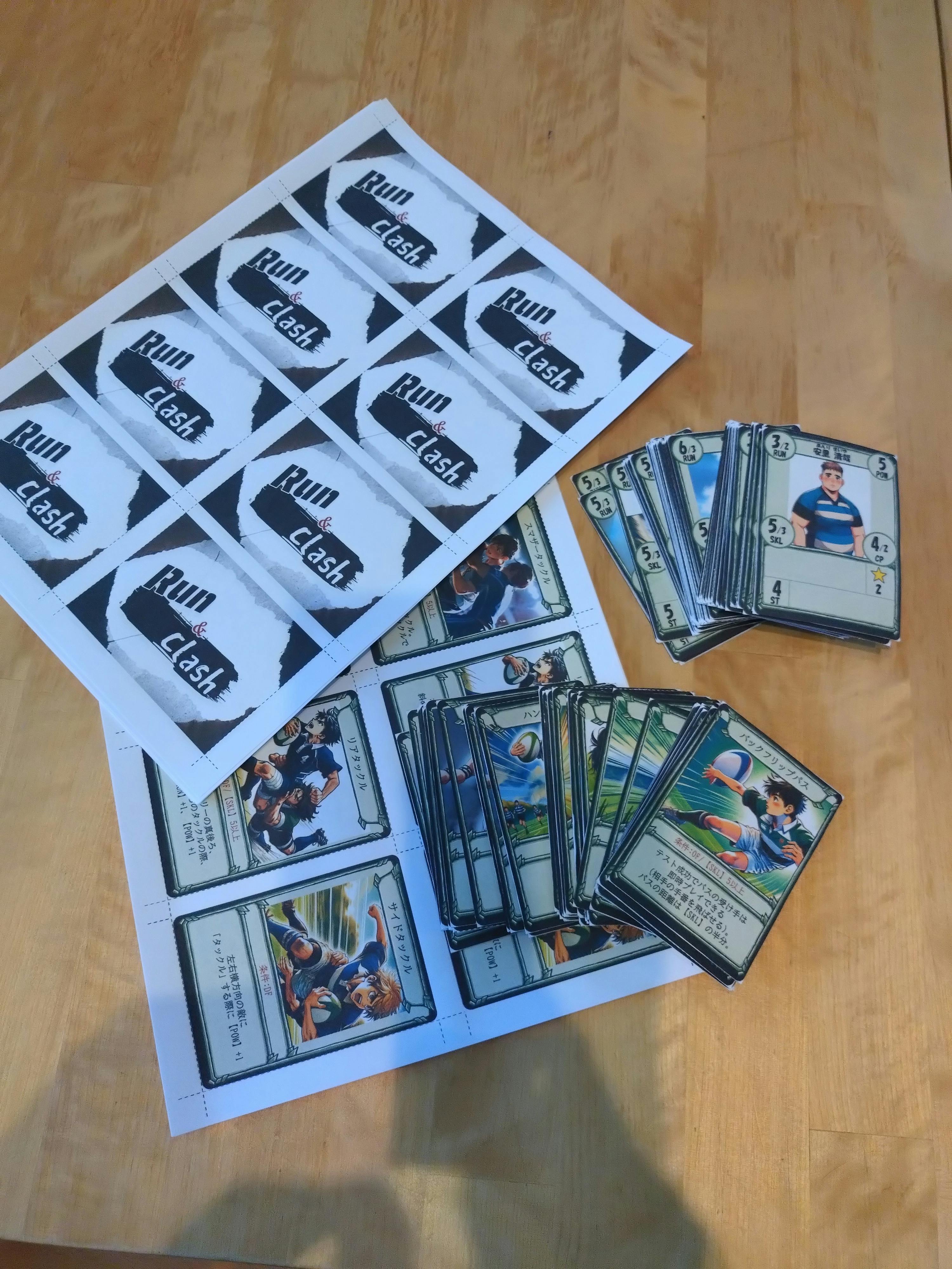 今回のプロジェクトでは、ラグビーゲーム「RUN&CRASH」のスターターセット"赤チーム・青チーム"各50セットの印刷資金と、RUN&CRASHは私の主催するサークル"ゲーム工房「ADVENTURE」"にとって最初の作品で、まだ実績(収益)がないため目標であるゲームマーケット春2025への出展に必要な旅費交通費の資金調達が目的です。