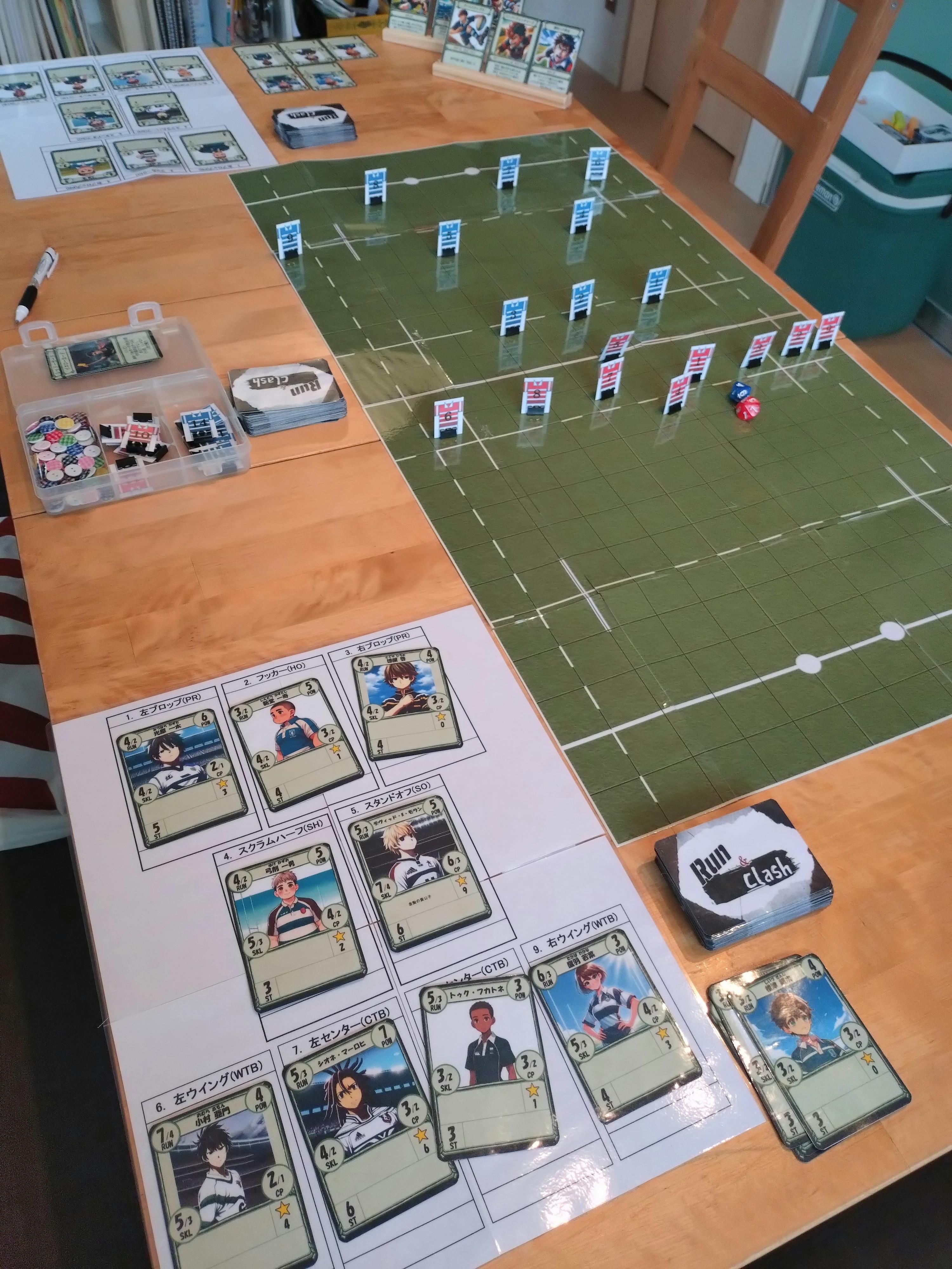ラグビーの定石、戦略や戦術がゲームを通じて自然に理解できるゲームとして構想から2年の年月を経て、ようやくモック(試作品)が完成しました。