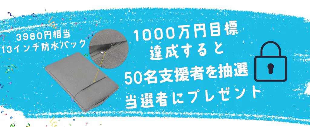 2025/06/15 20:48プロジェクトは**目標達成率109%**を突破しました!応援いただいた皆さま、本当にありがとうございます!まだご購入されていない方へ手に入れるチャンスは今だけ!クラウドファンディング限定の特別価格でゲットできるのは、この期間中だけとなっております!ぜひこの機会にチェックして、ある新しいライフスタイルを始めてみませんか?父の日のプレゼントにもぴったり!毎日頑張るお父さんへの感謝を伝える特別なギフトとしてもおすすめです。使いやすくて、スマート。そしてちょっと特別。今年の父の日は、「ありがとう」の気持ちを届けてみませんか?現在クラウドファンディング限定価格でご支援受付中!在庫数には限りがありますので、お早めに!残りの期間も引き続き、魅力をもっと多くの方にお届けできるよう努力してまいりますので、ぜひご家族・ご友人・お知り合いにもシェアしていただけますと嬉しいです!プロジェクトページはこちらhttps://camp-fire.jp/projects/822331/view最後までどうぞよろしくお願いいたします。 もっと見る