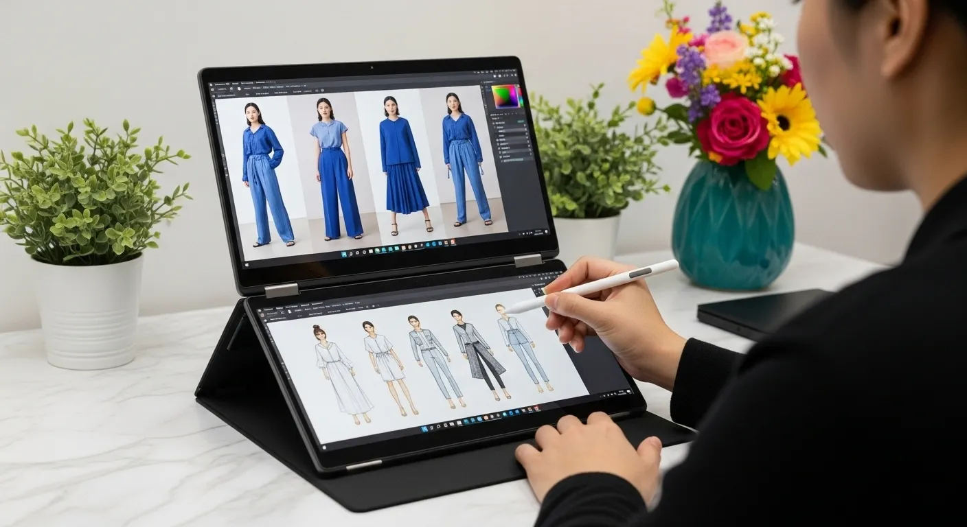 折りたたみ型のデュアルスクリーンは生産性を最大限に発揮。