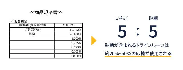 日本で多く流通しているドライイチゴを販売するために商品規格書を取り寄せたところ、予想以上に多くの砂糖が使用されていることを知りました。