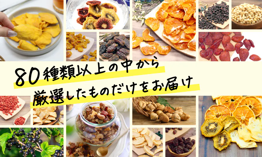 私たちはこれまでに80種類以上のドライフルーツを実際に味わいながら、ドライフルーツ専門店を運営してきました。