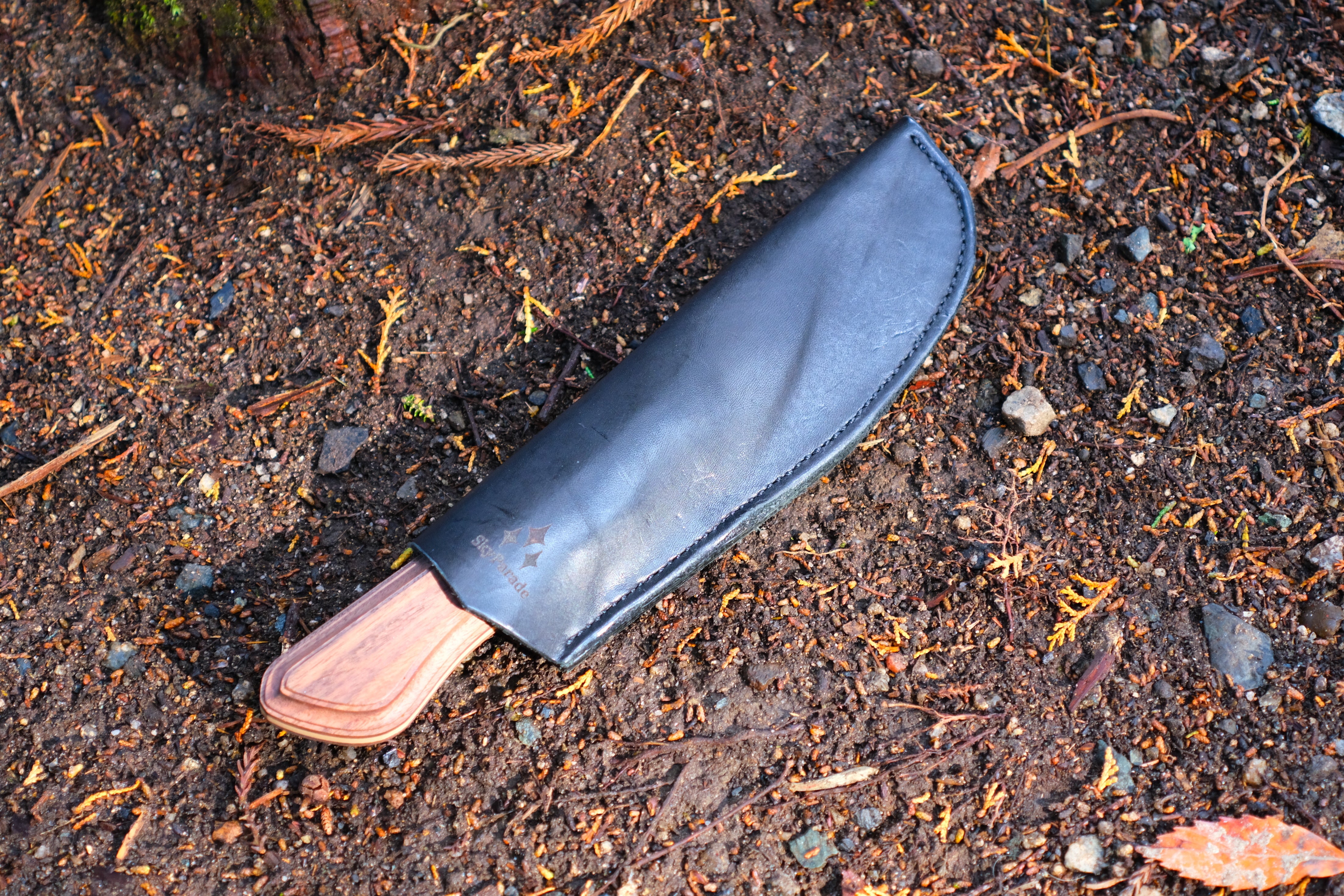 スカイパレードが製作した手縫いの重厚感のある革シースタイプになります。