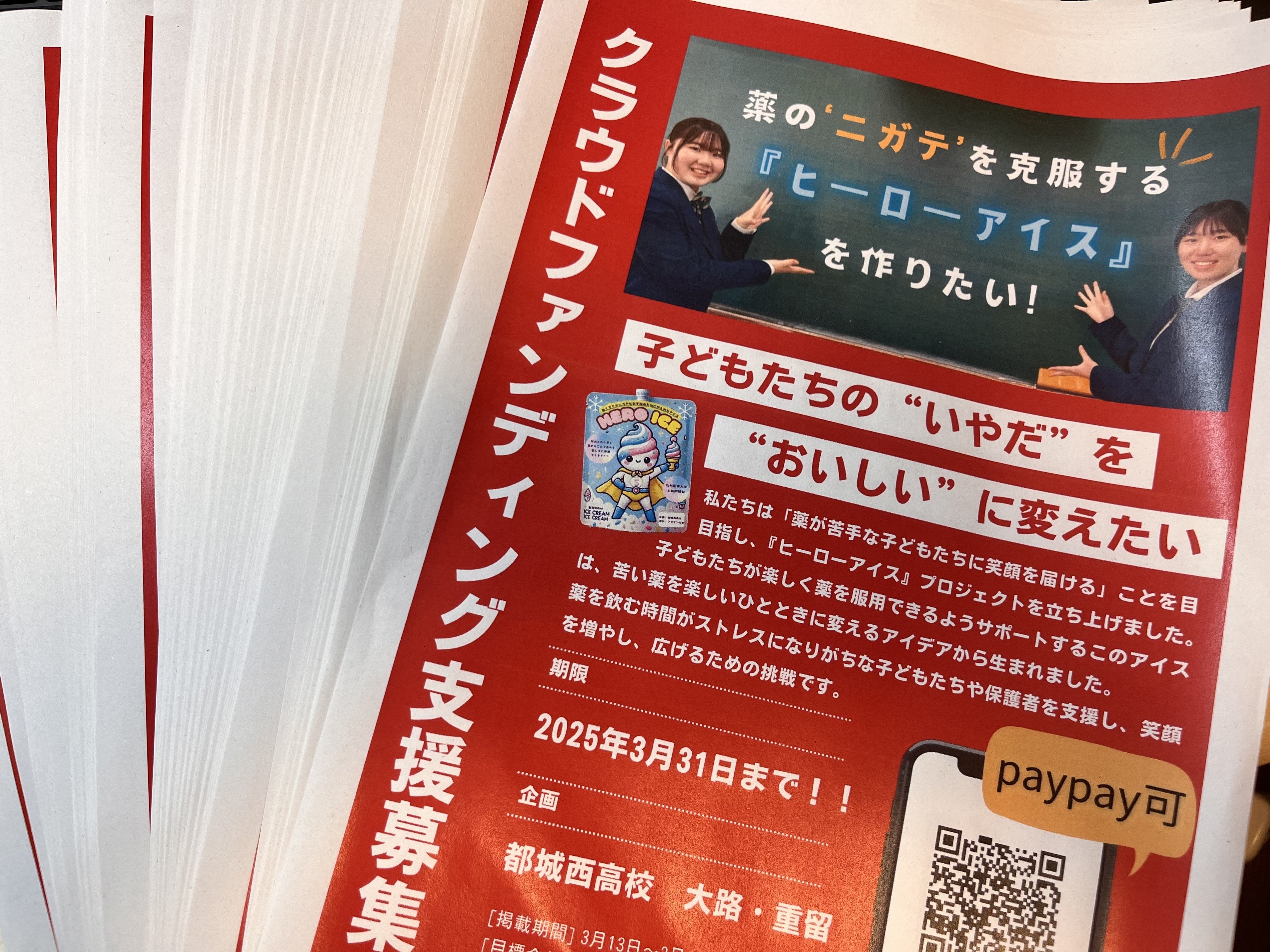 費用を抑えるため、私たち高校生が自分たちでデザインしました^_^