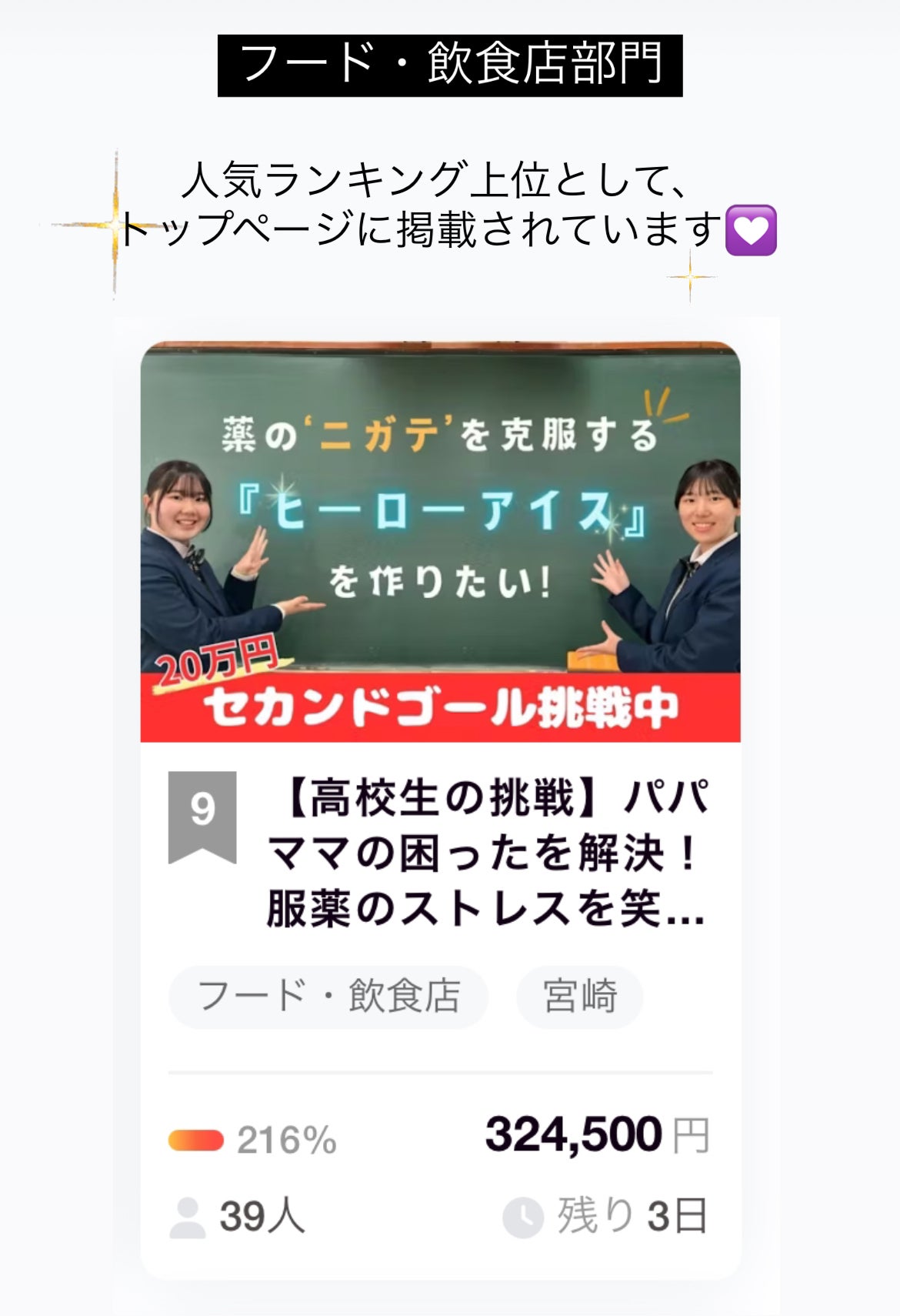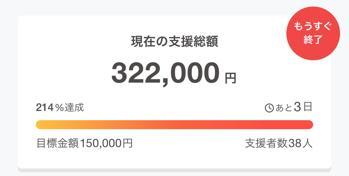 そして、当初の目標だった15万円の倍の支援金額である〝30万円〟ものご支援をいただくことができました。こんなに多くの方が応援してくださるなんて、本当に感動しています。