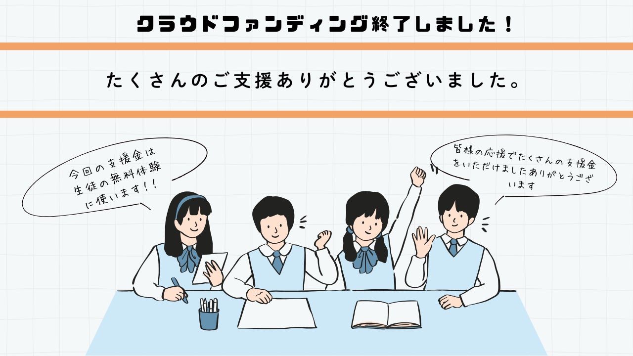 また、皆さんの支援金総額に応じて1か月の無料体験に参加できる人数も増える仕組みとなっております!!