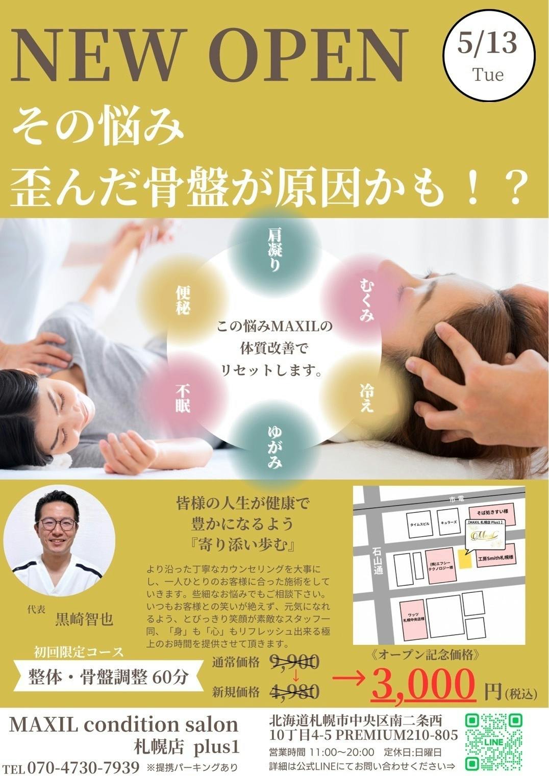 2025/04/20 09:29チラシできました!来週末に届くのでお店の準備と併せてチラシ配りもしていきます!チラシ置いてもいいよっていう方はご協力をお願い致しますm(_ _)mホットペッパービューティーにも4/24から開催が始まります!ホットペッパービューティーには下記のメニューで掲載します。----------------------------------------メニュー整体・骨盤調整60分9,900円リフレクソロジー40分8,800円(フットバス付き)セット100分18,700円延長10分1,650円クーポン初回 下記メニューから1つのみ整体・骨盤調整60分9,900円→4,980円リフレクソロジー40分8,800円→4,400円(フットバス付き)セット100分18,700円→9,380円----------------------------------------直接予約のお客様限定でチラシの価格でやらせていただきます!「整体・骨盤調整60分9,900円→4,980円→3,000円」それとリピーター限定で下記メニューを追加予定です。「オーダーメイド トータルボディーケア120分18,700円」お店の固定電話がまだ開通していないので、それまでの連絡先として携帯番号が載せてあります!公式LINEも作ったので、ご予約はお電話もしくは公式LINEからご連絡をお願い致しますm(_ _)mもちろん個人のLINEでも大丈夫です!よろしくお願い致しますm(_ _)m もっと見る