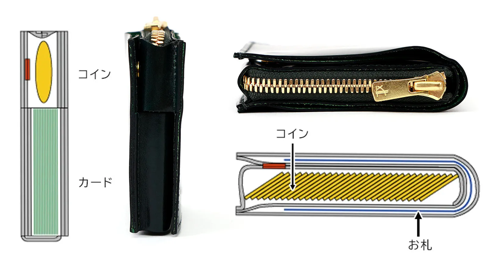 このロフト構造にならい、厚みの出やすい「小銭」・「カード」を重ねることなく「上下で分ける2層式」にする事で厚みの軽減に成功。
