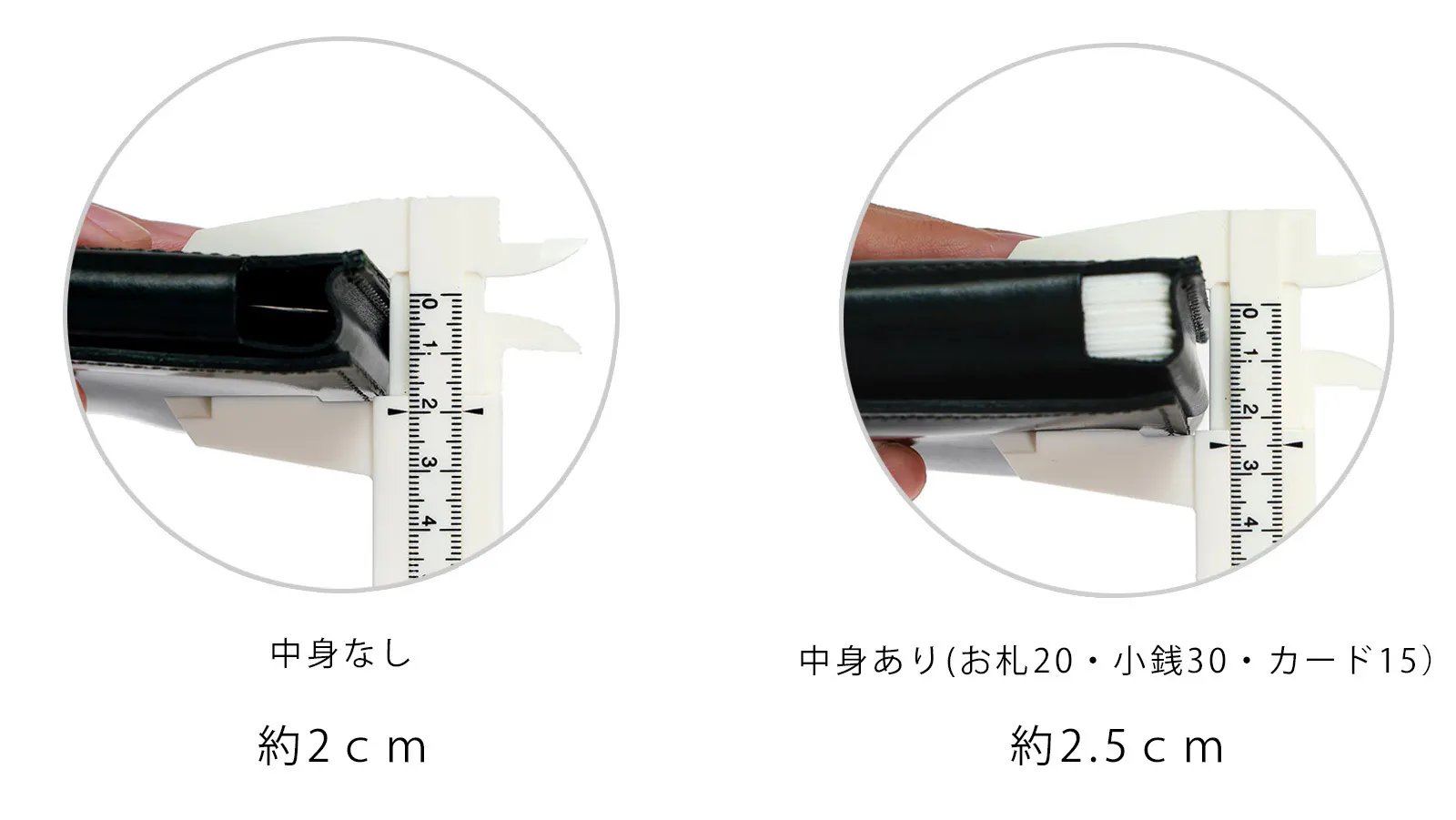 下記の図のように中身を入れても、ほとんど厚みが変わりません。