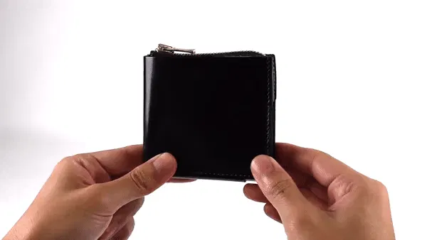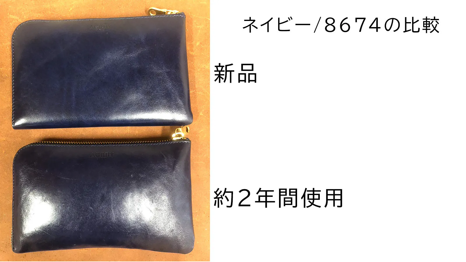 ※↑↑AGILITYで販売中のL字財布で比較(今回のリターンとは関係ありません。)元から光沢がありますが、さらに深みが増し、まるで「漆塗り」の小物のような光沢が楽しめます。