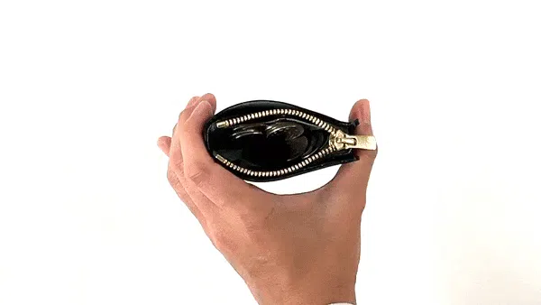 グッと押さえながら左右に振る事で小銭が一定方向に整列しやすくなっています。