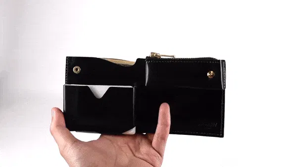 カードが芯になってるようなイメージですが、極端にカードが少ないときでも、コインポケットで蓋がされているのでカードが脱落する事はありません。