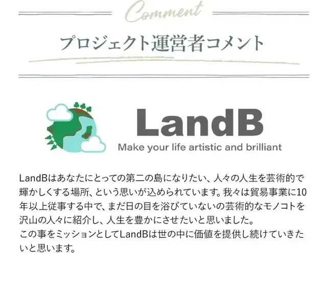 リターン品の配送が完了するまで、私たちLandBは Herartの日本における独占販売権を有する正規代理店です。詳細に関しては、ページ下部のリスク&チャレンジをご確認ください。
