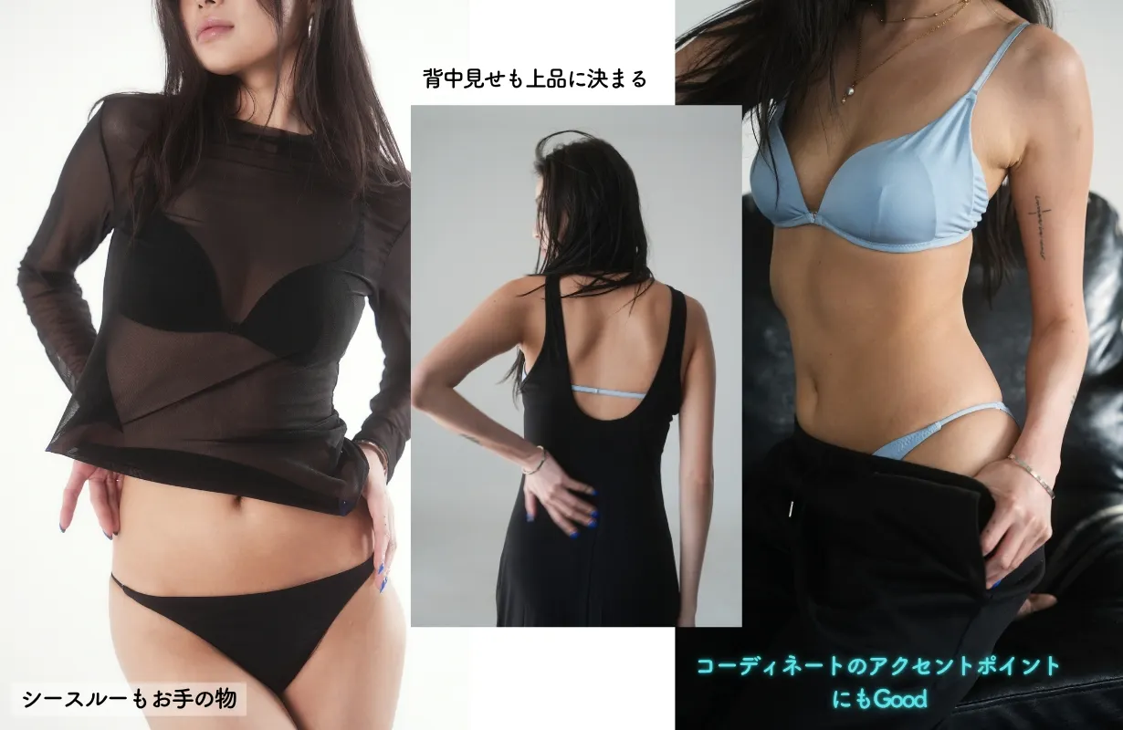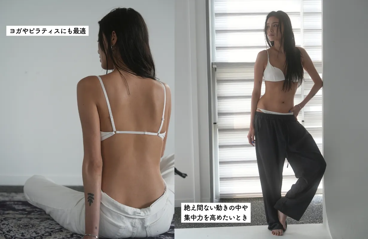 従来のブラに比べ締め付け感がなく、リラックスできる着け心地が特徴です。特にファッション性が高い点で海外ではトレンドアイテムとして注目されています。