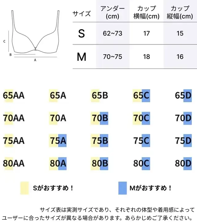 75A~70Cまではフィッティングの好みによって選んでいただけます。