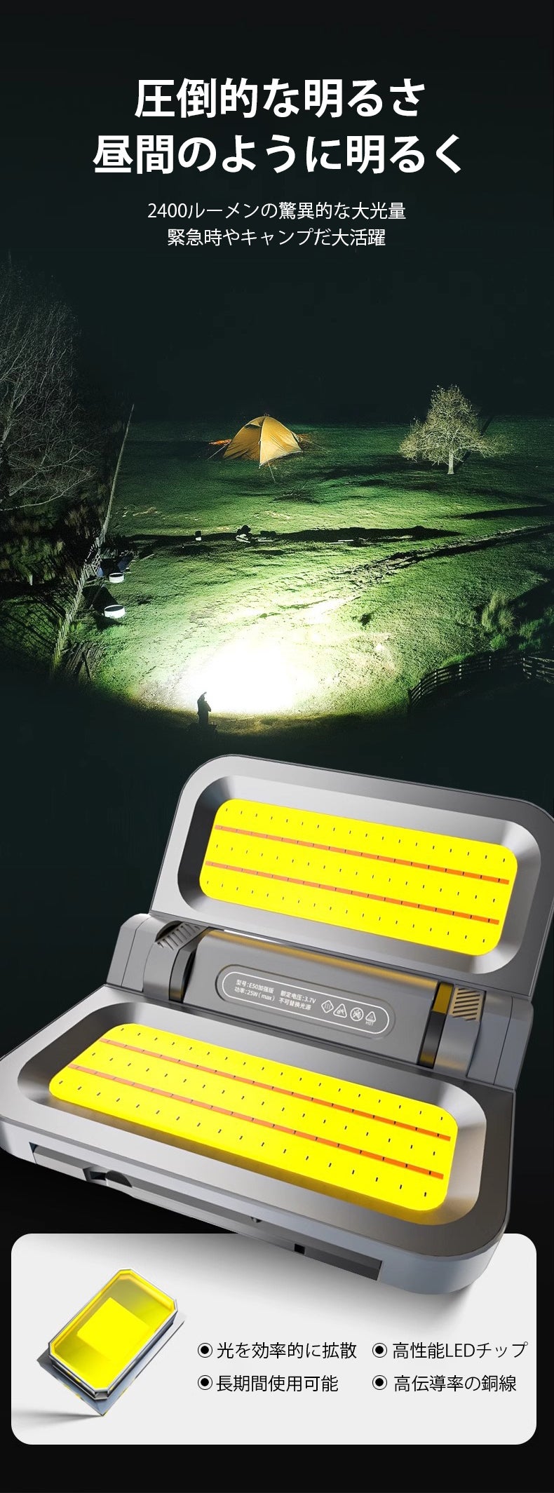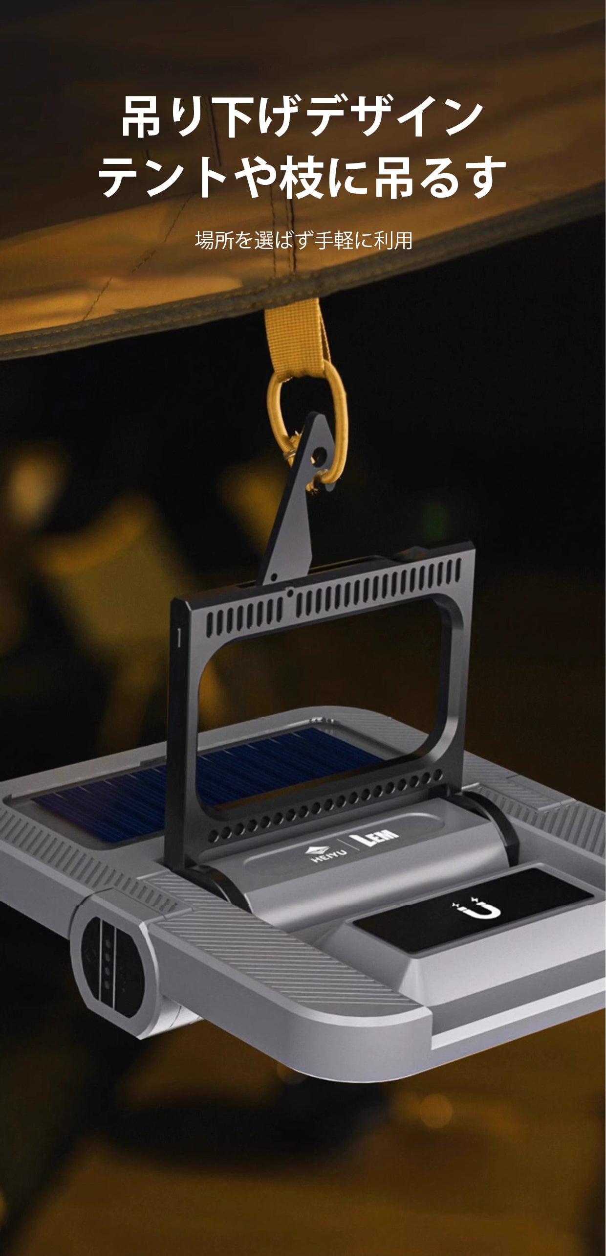 革新的な折り畳みデザインにより、160㎡の広範囲照明を実現し、アウトドアや防災時にも頼れる明るさを提供します。