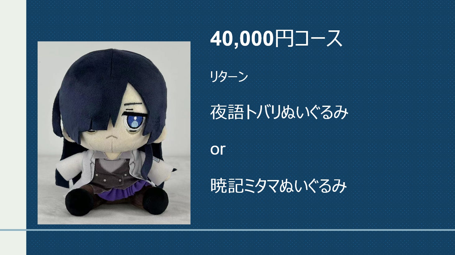 リターン:夜語トバリぬいぐるみもしくは暁記ミタマぬいぐるみ
