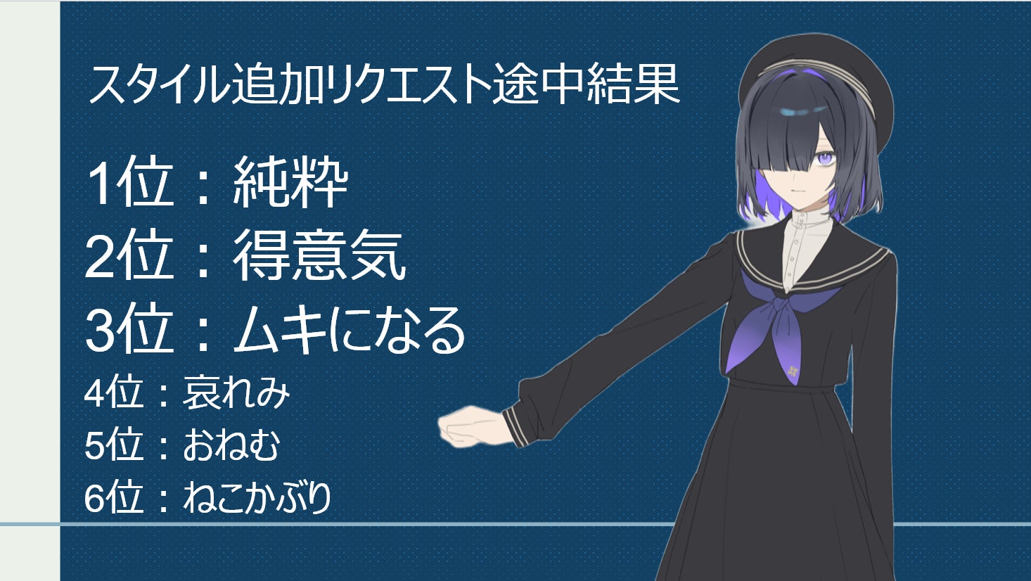 現在第四ゴールとしてすでに第二ゴールで達成した夜語トバリのスタイルの追加を目指しております。目標額1000万円を達成した場合実装を予定しております。
