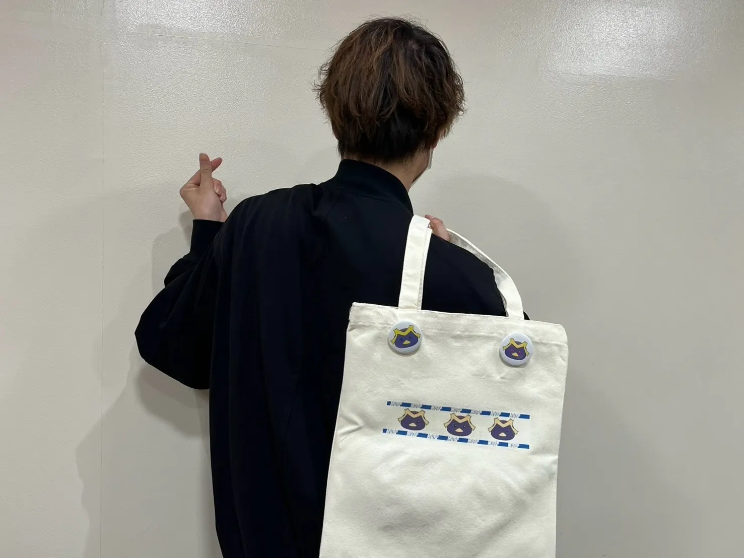 またトートバッグには、この写真のように缶バッジをつけてアレンジをして使ってみてもとても可愛いらしいです!