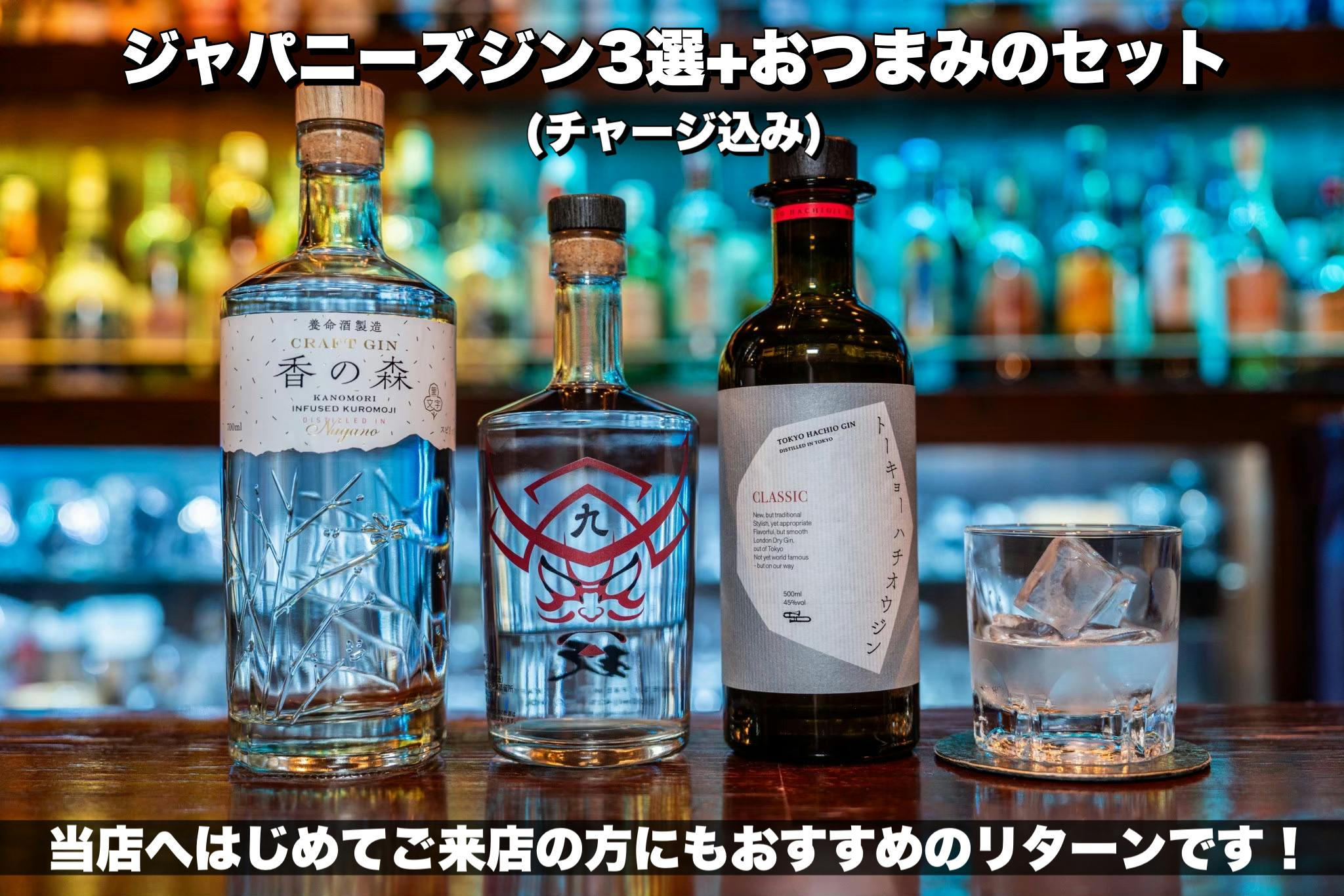 ¥6,000 ジャパニーズジン3選+おつまみのセット(チャージ込み)