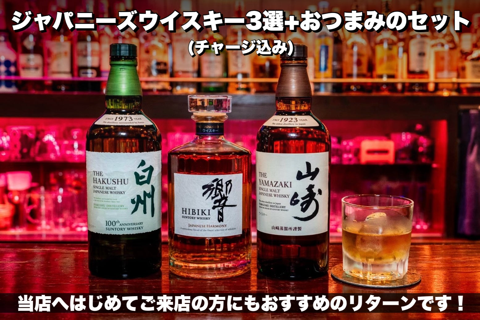 ¥8,000 ジャパニーズウイスキー3選+おつまみのセット(チャージ込み)