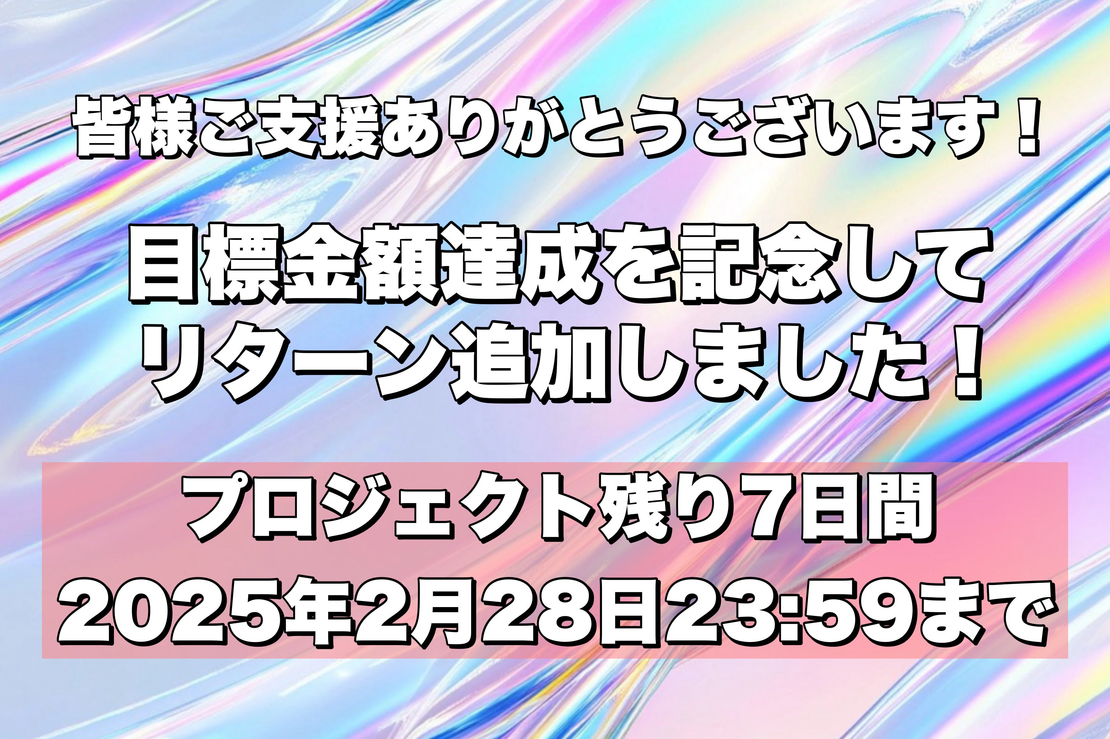 そしてこの度終了までのカウントダウンの中、新たなリターンの追加をさせていただきます。