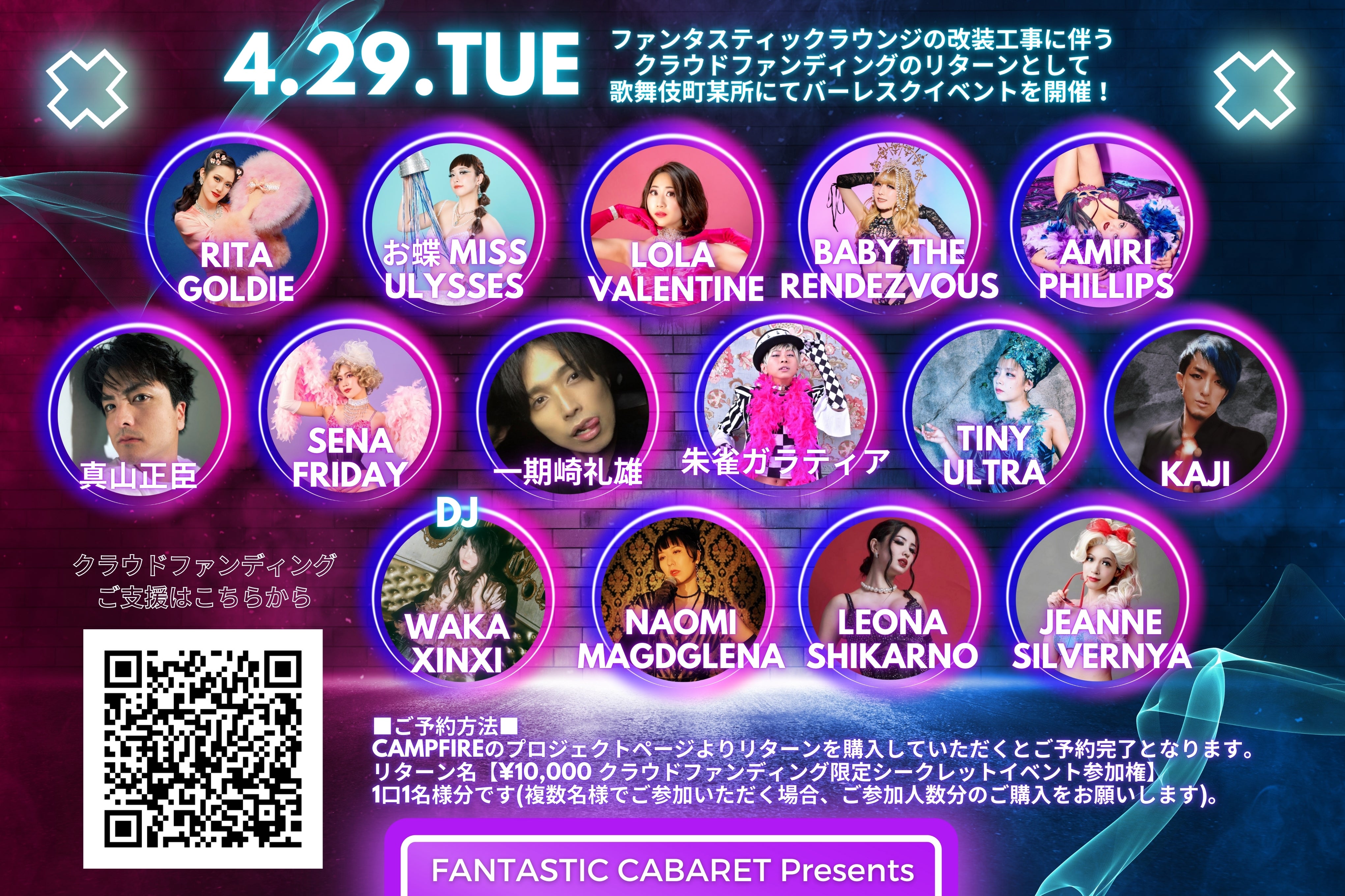 ファンタスティックラウンジの改装工事にともなうクラウドファンディングのリターンとして、歌舞伎町内某所にてバーレスク&エンターテイメントイベントを開催いたします!